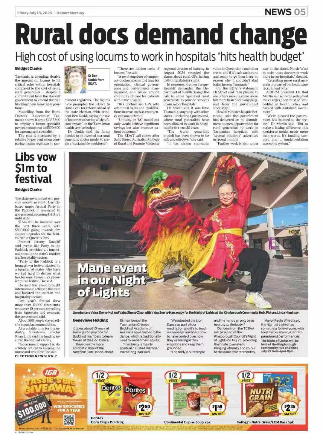 澳大利亞塔州中國佛教學院的舞獅隊將參加