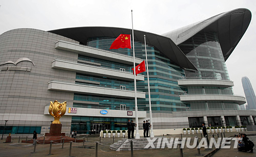 ![]() 5月 19日 7時 55分 , 香 港 金 紫 荊 廣 場 在 正 常 的 升 旗 儀 式 後 下 半 旗 誌 哀 。 當 日 , 香 港 特 區 各 重 要 場 所 包 括 政 府 部 門 、 主 要 景 點 、 學 校 等 , 降 半 旗 向 汶 川 地 震 中 的 死 難 者 誌 哀 。 為 表 達 全 國 各 族 人 民 對 四 川 汶 川 大 地 震 遇 難 同 胞 的 深 切 哀 悼 , 國 務 院 決 定 , 2008年 5月 19日 至 21日 為 全 國 哀 悼 日 。 新 華 社 記 者 劉 蓮 芬 攝