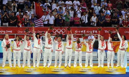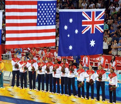 | 8 月 23 日 , 在 北 京 五 棵 松 奥 林 匹 克 篮 球 馆 进 行 的 北 京 奥 运 会 女 篮 决 赛 中 , 美 国 队 以 92 比 65 战 胜 澳 大 利 亚 队 , 获 得 冠 军 , 澳 大 利 亚 队 摘 得 银 牌 , 而 俄 罗 斯 队 以 94 比 81 战 胜 中 国 队 , 获 得 季 军 。 |