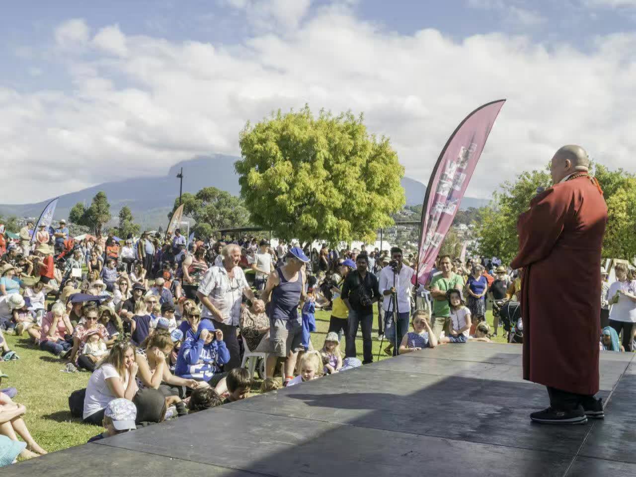 醍 醐 灌 頂 自 在 解 脫 ── 澳 大 利 亞 塔 州 中 國 佛 教 學 院 應 邀 於 世 界 美 食 節 表 演 聖 法 獅 子 舞 2017 年 3 月 26 日 , 中 國 漢 傳 佛 教 密 宗 ── 聖 密 宗 古 梵 密 金 剛 禪 佛 教 、 澳 大 利 亞 塔 州 中 國 佛 教 學 院 應 邀 在 塔 州 歌 樂 磯 市 舉 行 的 世 界 美 食 節 , 表 演 聖 法 獅 子 舞 。 澳 大 利 亞 聯 邦 政 府 實 施 多 元 文 化 政 策 之 後 , 不 同 國 家 、 不 同 民 族 、 不 同 膚 色 和 不 同 傳 統 的 各 國 人 民 , 憑 藉 著 這 股 多 元 文 化 同 存 並 育 的 東 風 , 相 繼 登 上 這 片 生 態 環 境 優 美 、 人 文 氣 息 寬 鬆 肥 沃 、 人 們 和 諧 和 平 的 土 地 上 , 生 根 、 發 芽 、 開 花 、 結 果 , 為 澳 洲 社 會 作 出 自 己 的 一 份 貢 獻 。 由 塔 州 歌 樂 磯 市 委 主 辦 的 世 界 美 食 節 , 目 的 正 是 慶 祝 和 諧 共 處 、 多 元 並 存 的 璀 璨 多 彩 。 澳 大 利 亞 塔 州 中 國 佛 教 學 院 在 薄 伽 梵 智 及 維 摩 詰 宗 師 的 靈 性 帶 領 下 , 應 邀 參 加 世 界 美 食 節 表 演 聖 法 金 剛 獅 子 舞 , 今 年 已 是 第 六 屆 。 在 陽 光 明 媚 、 涼 風 送 爽 的 塔 州 金 秋 週 日 午 間 , 聖 密 金 剛 法 獅 子 再 度 以 祂 獨 特 的 魅 力 和 親 和 力 , 獲 得 了 在 場 觀 眾 的 熱 烈 歡 迎 和 鼓 掌 讚 嘆 , 令 眾 生 在 欣 賞 精 彩 表 演 的 同 時 , 領 略 靈 性 醍 醐 , 得 自 在 解 脫 。 照 片 中 反 映 的 是 這 次 弘 法 活 動 的 盛 況 之 一 部 分 有 相 片 段 , 聖 密 行 者 遵 循 根 本 靈 性 導 師 之 綬 紀 , 嚴 格 遵 行 三 聚 淨 戒 : 持 攝 律 儀 戒 , 融 攝 善 法 戒 , 調 攝 眾 生 戒 、 饒 益 有 情 戒 , 實 踐 聖 密 根 本 經 典 之 法 教 , 瑜 伽 於 嘛 哈 毗 盧 遮 那 大 日 如 來 的 自 受 用 身 , 從 而 保 護 每 一 位 眾 生 最 可 寶 貴 的 清 淨 自 性 , 昇 起 他 受 用 身 、 應 機 感 扣 之 殊 勝 大 用 , 將 中 國 漢 傳 佛 教 密 宗 ── 聖 密 宗 古 梵 密 金 剛 禪 佛 教 的 靈 性 價 值 觀 , 善 巧 方 便 地 佈 施 給 眾 生 。 |