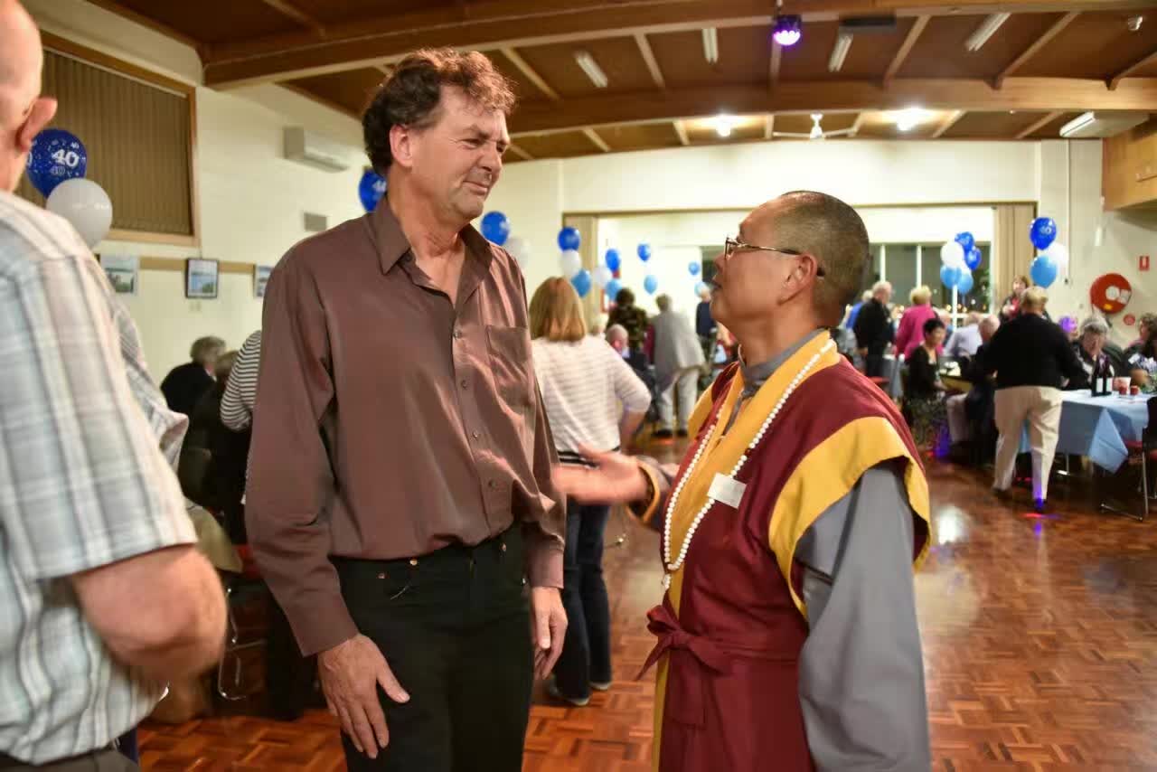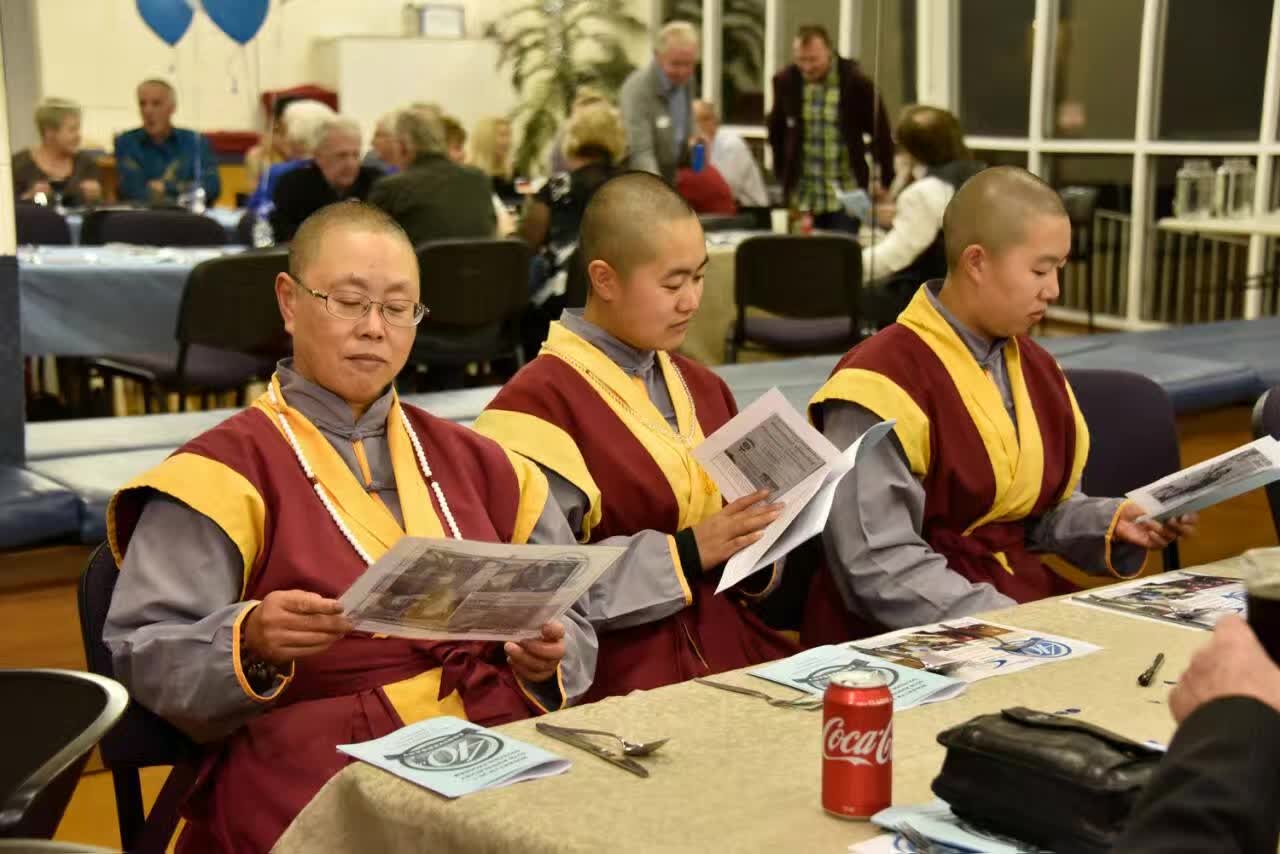 2017 年 4 月 22 日 星 期 六 , 霍 巴 特 社 區 及 多 元 文 化 電 台 Hobart FM 迎 來 了 它 的 四 十 歲 生 日 。 電 台 的 委 員 會 、 廣 播 員 、 志 願 工 作 者 共 同 慶 祝 , 而 舉 行 盛 大 晚 宴 。 澳 大 利 亞 塔 州 中 國 佛 教 學 院 在 薄 伽 梵 智 及 維 摩 詰 宗 師 的 靈 性 指 示 之 下 , 派 出 由 金 剛 法 賢 長 老 帶 隊 的 四 位 年 輕 長 老 和 轉 世 者 代 表 出 席 盛 會 。 澳 大 利 亞 塔 州 中 國 佛 教 學 院 自 2010 年 起 , 通 過 電 台 的 多 元 文 化 委 員 會 評 判 審 核 之 後 , 作 為 華 人 社 團 代 表 而 應 邀 在 電 台 作 每 週 兩 次 的 華 語 廣 播 節 目 , 與 霍 巴 特 廣 大 地 區 的 華 人 聽 眾 , 分 享 中 國 傳 統 文 化 , 分 享 中 國 密 學 靈 性 知 識 ; 亦 藉 電 台 華 語 廣 播 的 聖 緣 , 薄 伽 梵 智 及 維 摩 詰 宗 師 的 聖 密 龍 講 教 法 , 得 以 每 週 兩 次 面 向 全 世 界 聖 密 長 老 、 聖 密 上 師 、 聖 密 行 者 、 聖 密 信 眾 和 有 緣 眾 生 , 聖 法 醍 醐 , 遍 灑 三 界 , 上 求 下 化 , 瑜 伽 一 如 。 慶 祝 會 由 始 至 終 洋 溢 著 和 諧 歡 樂 的 氣 氛 , 會 場 內 愉 悅 之 聲 貫 耳 。 會 場 的 佈 置 顯 示 出 籌 劃 小 組 的 自 出 心 裁 和 細 緻 入 微 ── 以 霍 巴 特 電 台 台 徽 為 主 調 的 藍 色 氣 球 點 綴 增 趣 , 餐 桌 上 代 表 澳 大 利 亞 大 地 和 傳 統 文 化 的 按 樹 葉 , 拱 托 著 代 表 多 元 文 化 的 不 同 國 家 和 地 區 的 國 旗 。 老 朋 友 相 聚 談 笑 風 生 , 電 台 運 作 , 四 十 週 年 , 風 雨 同 舟 , 曲 折 多 磨 , 感 慨 良 多 , 令 人 回 味 。 在 司 儀 的 介 紹 之 下 , 大 會 一 邊 播 放 過 去 不 同 時 代 的 廣 播 節 目 錄 音 , 勾 起 大 家 的 溫 暖 回 憶 和 熱 烈 討 論 , 一 邊 請 來 電 台 的 老 操 作 人 員 和 廣 播 員 , 相 繼 跟 大 家 分 享 電 台 的 歷 史 和 經 歷 。 有 三 十 多 年 風 雨 不 改 , 堅 持 每 週 多 元 文 化 節 目 的 菲 律 賓 女 士 和 意 大 利 老 先 生 ; 有 為 電 台 初 期 運 作 投 入 力 量 設 置 器 材 的 技 術 人 員 ; 有 三 十 多 年 前 在 電 台 工 作 , 雖 已 離 開 塔 州 卻 特 地 從 悉 尼 到 來 慶 祝 會 的 女 廣 播 員 。 慶 祝 會 中 , 亦 對 貢 獻 傑 出 的 廣 播 員 頒 發 獎 狀 , 並 請 來 塔 州 著 名 的 男 音 三 重 唱 表 演 。 在 年 資 最 少 和 最 老 的 廣 播 員 同 切 生 日 蛋 糕 之 下 , 慶 祝 晚 會 圓 滿 落 幕 。 金 剛 法 賢 長 老 代 表 薄 伽 梵 智 及 維 摩 詰 宗 師 和 澳 大 利 亞 塔 州 中 國 佛 教 學 院 向 電 台 會 長 和 司 庫 致 以 問 候 並 告 別 。 薄 伽 梵 智 及 維 摩 詰 宗 師 廿 八 年 前 跨 出 祖 國 國 門 , 展 開 世 界 性 大 弘 之 時 輪 , 以 澳 大 利 亞 塔 州 為 根 據 地 , 向 全 世 界 幅 射 聖 密 華 光 。 中 國 漢 傳 佛 教 密 宗 ── 聖 密 宗 古 梵 密 金 剛 禪 佛 教 猶 如 在 澳 大 利 亞 多 元 共 存 的 土 壤 中 茁 壯 成 長 的 奇 葩 , 與 塔 州 人 民 共 沐 多 元 文 化 的 春 風 , 共 享 藍 天 。 滴 水 之 恩 當 湧 泉 相 報 , 我 們 衷 心 感 謝 澳 大 利 亞 和 塔 州 人 民 的 包 容 和 接 納 , 衷 心 感 謝 霍 巴 特 社 區 及 多 元 文 化 電 台 給 予 的 機 會 。 甘 霖 紛 飛 , 華 露 灑 淨 , 遠 邊 天 際 隱 現 紫 紅 色 虹 光 ── 詩 情 畫 意 蘊 無 盡 聖 密 禪 機 , 為 此 次 無 聲 弘 法 活 動 畫 上 了 圓 滿 的 句 號 。 期 望 眾 生 應 機 感 扣 , 功 行 成 熟 , 契 徹 心 源 , 自 覺 本 智 , 現 量 發 聖 。 |