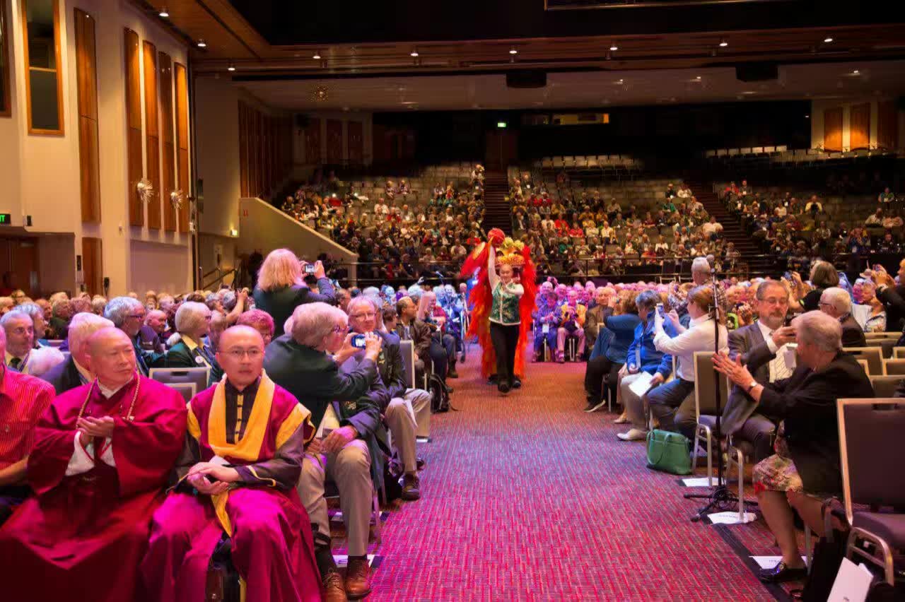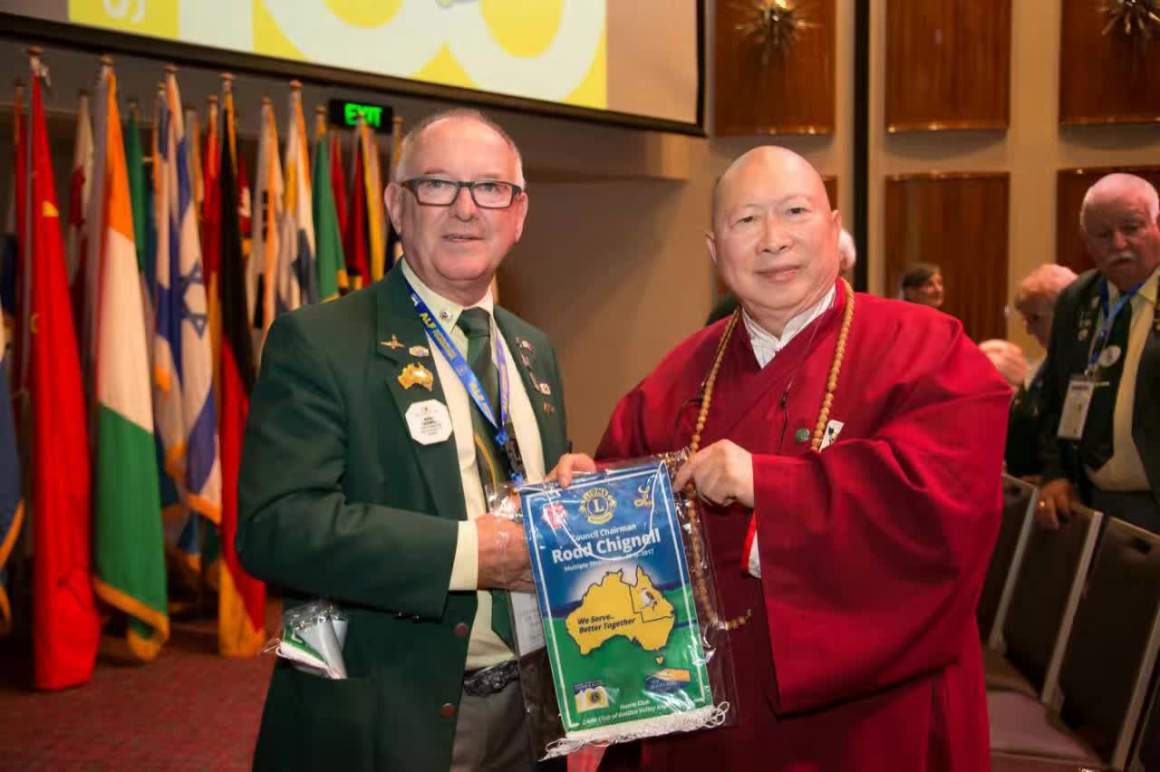 獅 子 會 成 立 一 百 週 年 , 全 球 紀 念 大 會 , 於 Hobart 召 開 , 獅 子 會 會 議 : 國 際 獅 子 會 是 一 個 非 營 利 的 服 務 性 國 際 社 團 。 社 團 名 稱 獅 子 會 LIONS Club 中 的 「 獅 子 」 , 是 L – liberty( 自 由 ) , I – intelligence( 智 慧 ) , ON – our nation , S – safety ( 我 們 國 家 的 安 全 ) 之 意 。 中 文 含 意 為 『 尊 重 自 由 , 運 用 智 慧 , 增 進 我 們 國 家 的 安 全 』 。 今 年 是 國 際 獅 子 會 成 立 的 一 百 週 年 紀 念 , 作 為 今 年 七 月 在 國 際 獅 子 會 發 祥 地 - 美 國 芝 加 哥 國 際 會 議 一 百 週 年 慶 祝 的 一 部 份 , 澳 大 利 亞 獅 子 會 特 別 在 霍 巴 特 舉 行 會 議 , 2017 年 5 月 5 日 星 期 五 , 為 會 議 的 開 幕 式 。 智 及 宗 師 及 澳 大 利 亞 塔 州 中 國 佛 教 學 院 很 榮 幸 被 邀 請 參 加 是 次 盛 會 。 會 議 由 現 任 塔 州 總 督 尊 敬 的 凱 特 . 華 納 教 授 閣 下 ( Her Excellency, Professor the Honourable Kate Warner AC ) 正 式 開 幕 ; 霍 巴 特 市 長 Sue Hickey 市 議 員 、 澳 大 利 亞 獅 子 會 總 監 Tony Benbow 先 生 OAM 及 理 事 會 主 席 Rodd Chignell 先 生 , 連 同 超 過 一 千 位 本 地 及 澳 洲 其 他 地 區 的 獅 子 會 會 員 出 席 於 在 維 斯 特 角 大 酒 店 舉 行 的 活 動 。 應 澳 大 利 亞 塔 州 中 國 佛 教 學 院 的 老 朋 友 ── 是 次 會 議 主 席 、 塔 州 滅 罪 組 織 副 主 席 及 獅 子 會 塔 州 分 會 前 會 長 David Daniels 先 生 OAM 的 邀 請 , 佛 教 學 院 的 一 對 聖 密 金 剛 獅 子 , 由 馴 獅 手 引 領 下 , 為 國 際 獅 子 會 開 幕 式 的 百 年 火 炬 巡 行 開 路 。 金 剛 獅 子 護 送 火 炬 到 台 上 後 , 為 在 場 參 與 者 作 了 一 個 精 華 表 演 , 並 得 到 觀 眾 們 熱 烈 掌 聲 支 持 。 智 及 宗 師 被 邀 請 出 席 是 次 盛 事 , 是 為 表 彰 宗 師 多 年 來 與 塔 州 獅 子 會 的 友 誼 及 支 持 。 在 霍 巴 特 市 長 的 演 講 中 , 她 也 再 次 讚 許 宗 師 的 到 臨 及 感 謝 佛 教 學 院 對 霍 巴 特 市 委 一 直 以 來 的 支 持 及 貢 獻 。 澳 大 利 亞 塔 州 中 國 佛 教 學 院 感 謝 是 次 會 議 主 辦 方 的 誠 意 邀 請 , 同 時 , 對 佛 教 學 院 的 老 朋 友 ── 獅 子 會 會 員 及 前 警 察 督 察 Craig Waterhouse 先 生 的 熱 情 招 待 , 深 深 感 謝 。 金 剛 佛 護 撰 文 聖 密 宗 傳 媒 組 攝 影 |