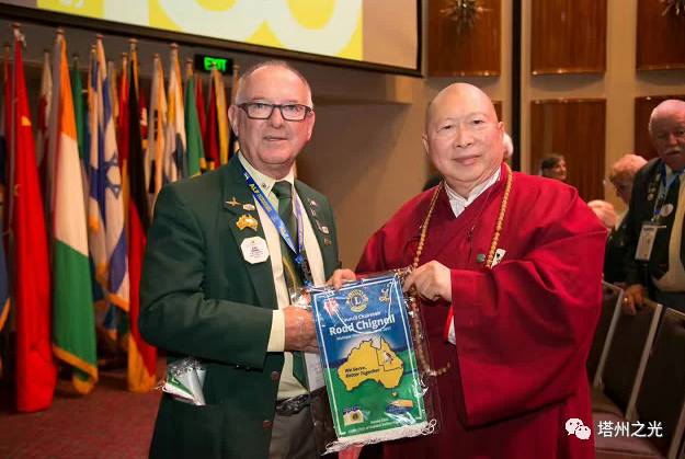 應 澳 大 利 亞 塔 州 中 國 佛 教 學 院 的 老 朋 友 ── 是 次 會 議 主 席 、 塔 州 滅 罪 組 織 副 主 席 及 獅 子 會 塔 州 分 會 前 會 長 David Daniels 先 生 OAM 的 邀 請 , 佛 教 學 院 的 一 對 聖 密 金 剛 獅 子 , 在 馴 獅 手 引 領 下 , 為 國 際 獅 子 會 開 幕 式 的 百 年 火 炬 巡 行 開 路 。 金 剛 獅 子 護 送 火 炬 到 台 上 後 , 為 在 場 參 與 者 作 了 一 個 精 華 表 演 , 並 得 到 觀 眾 們 熱 烈 的 掌 聲 支 持 。