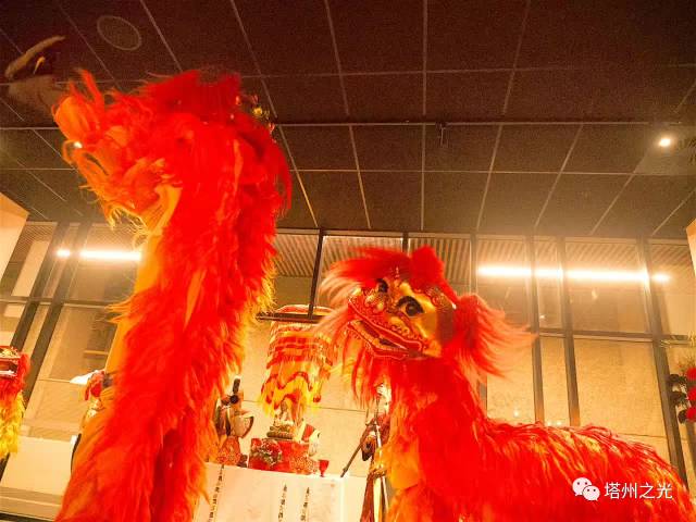 2017 年 7 月 21 日 星 期 五 傍 晚 , 澳 大 利 亞 塔 州 中 國 佛 教 學 院 應 新 加 坡 〝 飛 龍 集 團 〞 之 邀 , 為 其 在 霍 巴 特 市 中 心 新 建 的 酒 店 中 式 餐 館 開 業 , 而 表 演 聖 法 獅 子 舞 。