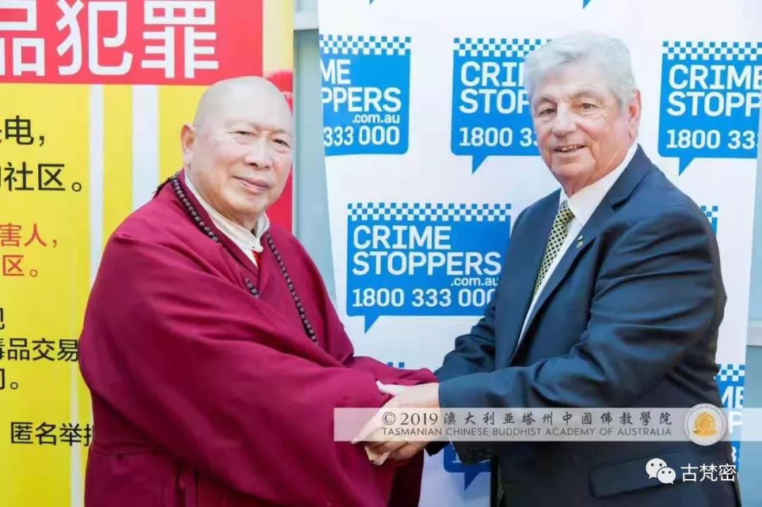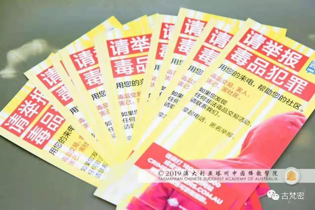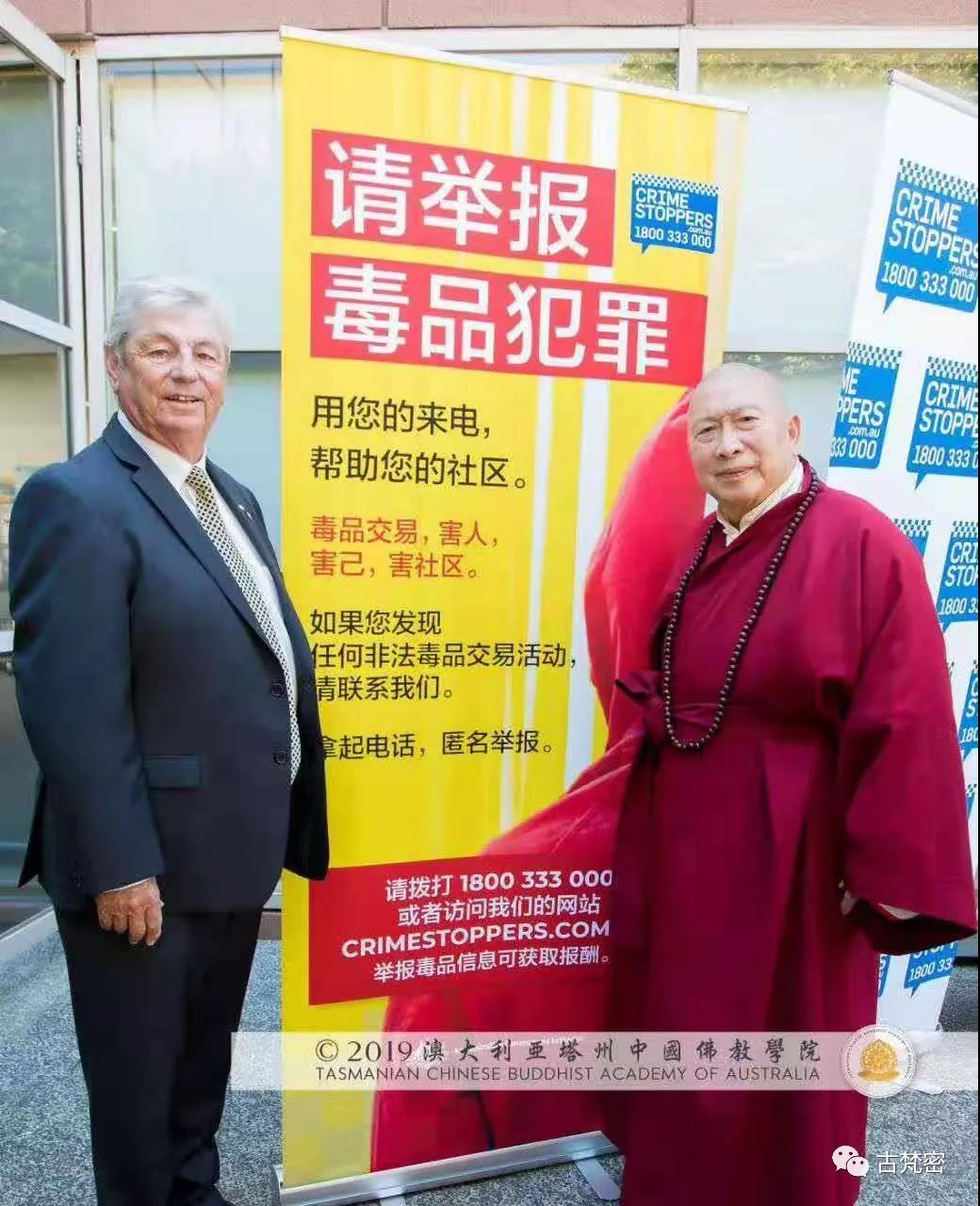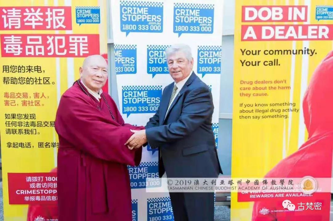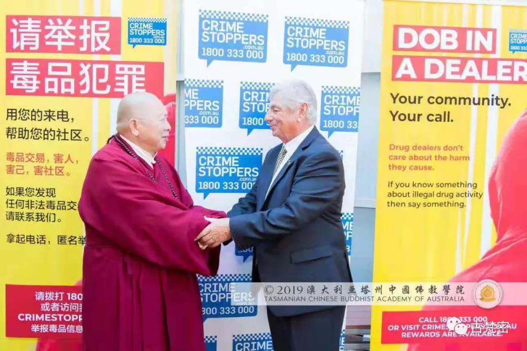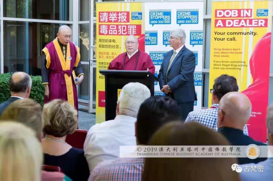 今 天 的 主 題 是 「 中 國 社 區 為 更 安 全 的 塔 州 而 支 持 舉 報 罪 行 」 。 作 為 一 名 澳 大 利 亞 公 民 , 華 人 社 團 的 一 份 子 , 舉 報 任 何 販 賣 非 法 毒 品 人 士 , 這 是 我 們 應 盡 的 義 務 和 責 任 。 舉 報 販 賣 非 法 毒 品 人 士 , 這 不 僅 是 拯 救 我 們 不 吸 毒 的 人 , 也 是 挽 救 和 拯 救 那 些 吸 毒 的 人 的 生 命 。 作 為 塔 州 華 人 , 我 們 期 望 以 實 際 行 動 , 為 遏 止 罪 行 組 織 的 工 作 , 為 令 塔 州 成 為 全 世 界 最 安 全 的 地 方 , 獻 出 我 們 微 薄 的 貢 獻 。 在 此 , 我 代 表 我 們 的 佛 教 組 織 , 向 遏 止 罪 行 組 織 贈 送 一 個 捐 助 。