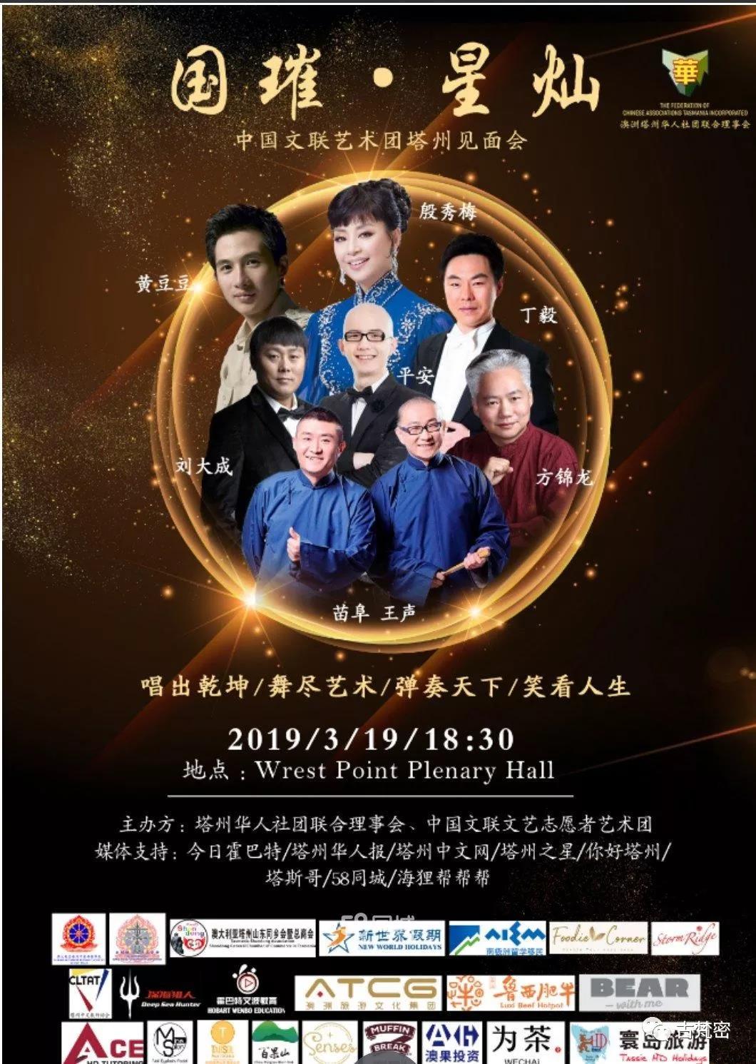 3 月 19 日 又 一 場 盛 宴 即 將 開 始 , 中 國 文 聯 塔 州 見 面 會 -- 濃 縮 版 春 晚 空 降 塔 州 , 只 為 豐 富 塔 州 當 地 居 民 和 學 生 的 業 餘 生 活 。 此 次 中 國 文 聯 藝 術 團 塔 州 見 面 會 活 動 離 不 開 塔 州 各 大 社 團 和 商 家 的 支 持 , 主 辦 方 由 衷 地 感 激 :