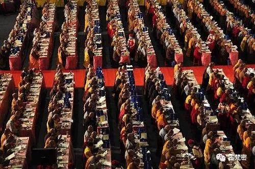是 日 , 天 佈 異 象 , 霓 虹 滿 天 。 高 僧 雲 集 , 吉 祥 圓 滿 。 佛 教 四 乘 Theravadayana, Mahayana, Vajrayana, Tantrayana 聖 僧 , 約 14,000 餘 人 參 會 。