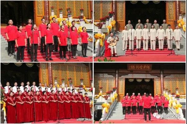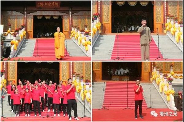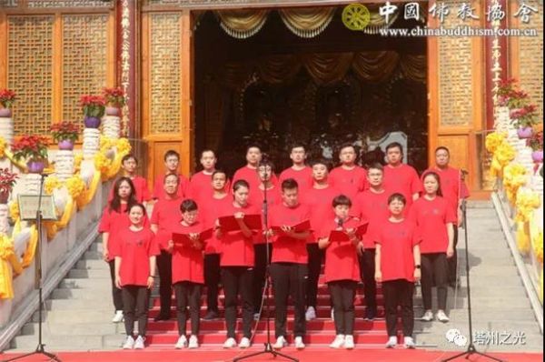 中 國 佛 協 辦 公 室 表 演 隊 的 配 樂 朗 誦 《 可 愛 的 中 國 》 率 先 將 觀 眾 們 帶 入 革 命 先 烈 深 情 憧 憬 的 未 來 美 好 中 國 之 意 境 中 , 他 們 又 豪 邁 合 唱 《 歌 唱 祖 國 》 告 慰 先 輩 們 對 祖 國 走 向 繁 榮 富 強 的 殷 切 期 望 。