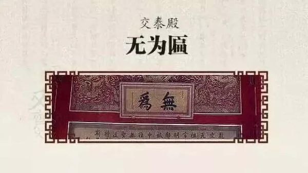 老 子 云 : 「 道 常 無 為 而 無 不 為 。 」 又 云 : 聖 人 處 無 為 之 事 , 行 不 言 之 教 。 」 康 熙 題 無 為 , 意 在 告 誡 君 主 要 體 恤 民 情 , 與 民 休 息 。 換 在 今 天 , 就 是 要 構 建 和 諧 社 會 之 意 。