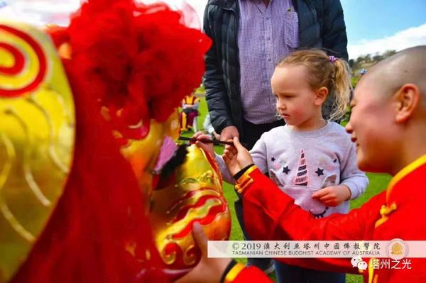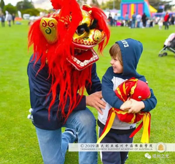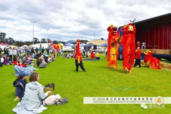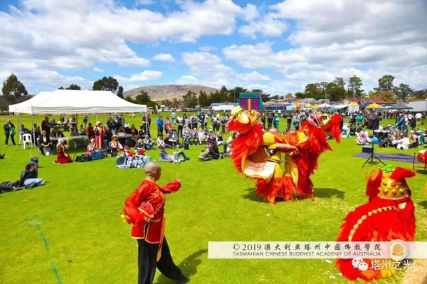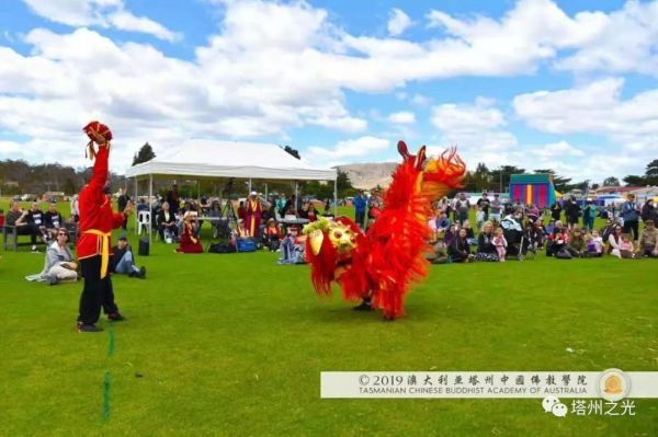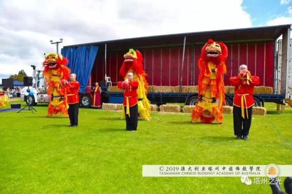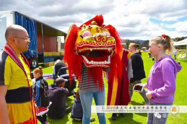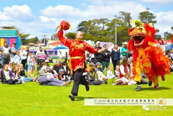 澳 大 利 亞 塔 州 中 國 文 化 公 園 地 處 的 莰 帕 尼 亞 市 與 布 萊 頓 市 相 鄰 , 都 屬 塔 州 南 中 地 市 委 管 轄 範 圍 , 因 而 澳 大 利 亞 塔 州 中 國 佛 教 學 院 與 布 萊 頓 市 和 其 市 民 友 誼 深 厚 。 布 萊 頓 嘉 年 華 會 籌 委 會 特 意 邀 請 澳 大 利 亞 塔 州 中 國 佛 教 學 院 表 演 聖 法 獅 子 舞 , 為 這 塔 州 傳 統 節 日 , 增 添 中 國 靈 性 文 化 的 色 彩 。