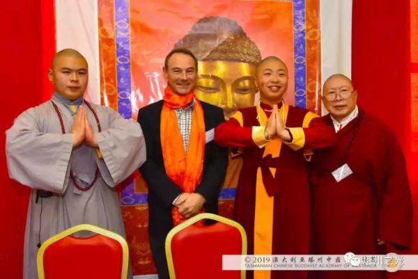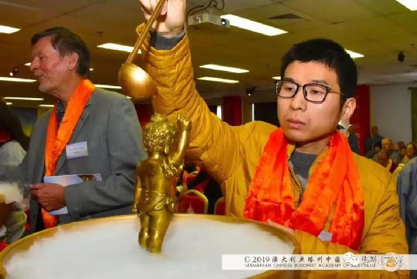 【 2019 浴 佛 節 1 】 聖 密 宗 舉 辦 佛 曆 2563 年 浴 佛 聖 典 —— 〝 浴 佛 節 〞 —— 感 悟 靈 覺 的 佛 教 節 日 今 天 , 「 肇 源 法 性 阿 絲 律 耶 宮 」 內 高 朋 滿 座 , 本 地 政 要 、 社 會 賢 達 、 宗 教 代 表 、 華 僑 僑 領 、 各 界 好 友 , 包 括 從 中 國 、 美 國 、 加 拿 大 、 英 國 、 紐 西 蘭 、 日 本 、 印 尼 、 馬 來 西 亞 、 越 南 、 香 港 、 韓 國 、 泰 國 等 世 界 各 地 專 程 到 來 朝 聖 赴 會 的 聖 密 信 眾 、 聖 密 行 者 、 聖 密 上 師 、 聖 密 長 老 , 新 老 朋 友 三 百 餘 人 濟 濟 一 堂 , 共 同 慶 祝 大 聖 釋 迦 牟 尼 佛 祖 二 五 六 三 年 聖 誕 。 就 如 塔 州 州 長 尊 敬 的 威 廉 . 霍 奇 曼 的 代 表 、 塔 州 律 政 部 長 尊 敬 的 伊 麗 絲 . 阿 徹 議 員 在 致 辭 中 讚 嘆 , 澳 大 利 亞 塔 州 中 國 佛 教 學 院 舉 行 的 慶 祝 佛 聖 誕 浴 佛 聖 典 , 已 成 為 廣 受 塔 州 霍 巴 特 民 眾 歡 迎 和 期 待 的 年 度 社 區 活 動 之 一 。 這 一 中 西 方 文 化 合 璧 的 慶 祝 節 日 , 傳 播 佛 教 慈 悲 、 智 慧 、 和 平 、 和 諧 、 宇 宙 大 愛 、 宇 宙 靈 性 、 宇 宙 法 喜 的 信 息 , 象 徵 世 界 從 黑 暗 走 向 光 明 。 在 這 一 天 , 於 莊 嚴 隆 重 的 慶 祝 大 聖 釋 迦 牟 尼 佛 祖 誕 生 的 儀 軌 中 , 女 賓 作 為 大 聖 佛 祖 的 母 親 ── 佛 母 摩 耶 夫 人 之 化 身 , 重 現 誕 下 悉 達 多 太 子 的 聖 況 ; 男 賓 演 繹 諸 天 諸 佛 降 聖 水 , 沐 浴 太 子 聖 體 。 如 是 , 大 眾 滌 盪 身 心 煩 惱 , 感 悟 靈 性 淨 覺 , 一 體 同 行 「 三 業 轉 三 密 」 的 即 身 成 佛 之 道 。 中 國 漢 傳 佛 教 密 宗 ── 聖 密 宗 古 梵 密 金 剛 禪 佛 教 是 重 體 證 的 , 其 體 證 的 過 程 , 以 聖 密 宗 詮 釋 學 的 話 語 境 界 而 言 , 就 是 聖 密 修 持 實 踐 。 聖 密 修 持 實 踐 , 其 基 本 的 指 導 思 想 , 基 本 的 靈 性 指 引 , 基 本 的 教 相 理 據 , 即 濫 觴 於 《 華 嚴 經 》 。 依 中 國 漢 傳 佛 教 密 宗 ── 聖 密 宗 古 梵 密 金 剛 禪 佛 教 之 話 語 境 界 , 靈 活 運 用 教 相 、 事 相 、 戒 相 、 圓 相 , 即 「 華 嚴 聖 緣 」 。 華 嚴 聖 緣 的 理 念 來 源 於 《 華 嚴 經 》 。 自 佛 梵 持 明 古 天 竺 以 降 , 大 聖 佛 祖 創 持 明 僧 團 , 立 十 二 乘 判 教 , 確 立 密 乘 十 三 部 根 本 大 典 , 由 是 《 華 嚴 經 》 、 《 大 日 經 》 、 《 金 剛 頂 經 》 等 , 是 中 國 漢 傳 佛 教 密 宗 ── 聖 密 宗 古 梵 密 金 剛 禪 佛 教 十 二 部 根 本 經 典 之 一 。 《 華 嚴 經 . 世 主 妙 嚴 品 》 記 載 : 以 「 十 身 」 來 說 明 大 聖 佛 祖 及 其 法 界 、 法 性 身 難 思 之 德 , 顯 示 遮 那 「 十 種 」 無 盡 法 界 身 雲 遍 於 法 界 成 正 覺 。 「 盧 舍 那 佛 之 果 法 」 即 涵 蓋 眾 生 界 , 因 此 眾 生 心 中 當 下 就 有 圓 滿 之 「 果 相 」 。 此 乃 中 國 漢 傳 佛 教 密 宗 ── 聖 密 宗 古 梵 密 金 剛 禪 佛 教 所 言 「 人 人 可 成 佛 」 的 究 竟 理 據 。 這 是 世 尊 初 成 正 覺 , 在 「 海 印 」 定 中 所 彪 炳 顯 現 之 宇 宙 真 像 ; 不 可 思 議 , 廣 大 無 邊 , 超 越 時 空 , 不 是 一 般 眾 生 乃 至 二 乘 所 可 瞭 解 的 境 界 。 由 是 , 華 嚴 聖 緣 此 無 礙 妙 境 、 寂 照 照 寂 、 法 界 緣 起 , 實 為 諸 佛 自 證 境 界 , 此 亦 為 華 嚴 最 高 境 界 , 乃 為 大 覺 真 心 、 「 海 印 三 昧 」 之 所 超 越 界 之 顯 示 。 浴 佛 法 會 以 後 , 薄 伽 梵 智 及 維 摩 詰 宗 師 就 聖 密 宗 世 界 大 弘 的 近 況 和 進 展 , 作 了 有 關 的 聖 密 龍 講 開 示 。 薄 伽 梵 智 及 維 摩 詰 宗 師 今 年 5 月 18 日 應 邀 回 祖 國 北 京 , 出 席 佛 教 文 化 工 作 委 員 會 成 立 儀 式 , 任 職 常 務 副 主 任 時 發 言 : 「 1989 年 4 月 16 日 , 我 走 過 羅 湖 橋 時 一 步 三 回 頭 , 仰 望 著 海 關 大 樓 的 五 星 紅 旗 , 心 中 默 禱 : 親 愛 的 祖 國 母 親 , 我 要 離 您 而 去 了 。 對 於 自 小 接 受 聖 宗 薄 伽 梵 大 聖 至 極 維 摩 詰 凈 悟 老 法 王 教 育 的 我 , 這 等 同 於 不 孝 。 所 以 , 請 母 親 您 諒 宥 這 不 孝 的 孩 子 。 您 的 慈 悲 智 慧 , 孩 子 全 領 受 了 ; 對 漢 密 這 一 祖 國 寶 貴 的 靈 性 文 化 遺 產 、 人 類 文 明 的 精 粹 , 我 帶 走 了 , 但 我 一 定 要 把 祂 送 回 您 的 懷 抱 。 今 天 , 我 站 在 祖 國 首 都 的 佛 教 文 化 講 台 上 闡 述 佛 教 靈 性 文 化 , 我 終 於 回 來 了 …… 」 薄 伽 梵 智 及 維 摩 詰 宗 師 對 眾 生 極 終 善 性 的 慈 悲 和 智 慧 , 對 祖 國 、 對 人 民 、 對 故 鄉 的 一 往 情 深 , 如 水 晶 般 晶 瑩 透 徹 , 激 勵 聖 密 長 老 、 聖 密 上 師 、 聖 密 行 者 、 聖 密 信 眾 在 實 踐 聖 密 菩 提 道 的 修 行 中 , 以 聖 密 宗 傳 統 三 乘 文 化 教 育 為 軸 心 , 以 令 中 國 漢 傳 密 法 流 傳 千 秋 萬 代 , 繁 衍 不 息 , 在 繼 承 弘 揚 中 國 傳 統 靈 性 文 化 、 弘 揚 中 國 漢 傳 佛 教 密 宗 密 法 中 不 遺 餘 力 , 鞠 躬 盡 瘁 。 一 如 薄 伽 梵 智 及 維 摩 詰 宗 師 時 常 教 誨 : 「 實 現 聖 宗 殷 切 的 愛 國 、 護 國 、 報 國 的 神 聖 願 望 。 」 以 下 是 佛 曆 二 五 六 三 年 浴 佛 聖 典 的 照 片 報 導 , 以 饗 全 世 界 高 僧 大 德 大 善 知 識 和 對 佛 教 有 興 趣 的 朋 友 們 , 佳 節 共 慶 , 法 喜 同 樂 。