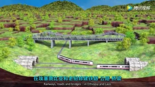 比 如 在 埃 塞 俄 比 亞 和 老 撾 建 鐵 路 、 公 路 、 橋 樑 ;