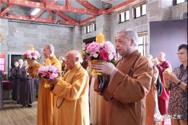 近 午 時 分 , 友 寺 靈 鷲 山 鐘 鼓 齊 鳴 迎 接 這 群 遠 道 而 來 的 大 陸 佛 教 代 表 團 , 在 心 道 法 師 陪 同 下 步 入 開 山 聖 殿 供 燈 禮 佛 , 殿 內 的 緬 甸 玉 佛 和 雙 塔 聖 石 吸 引 著 眾 人 目 光 , 加 上 一 旁 禪 修 靜 坐 的 空 間 , 與 殿 外 一 望 無 際 的 海 天 一 色 相 互 輝 映 , 它 不 但 是 一 個 道 場 , 也 是 心 靈 沈 殿 的 最 佳 場 域 。