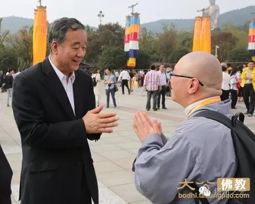 與國宗局外事司趙建政副司長熱情相見 文明因交流而多彩、因互鑑而豐富。金剛龍聖長老說,此次世界佛教論壇充份展示了中國佛教界的新風貌和新氣象,八個佛教分論壇和三個電視論壇、新媒體論壇主題鮮明,內容豐富,很接地氣,尤其是不少話題都與當代社會的發展以及信眾的需求有著密切的關係,非常具有吸引力。對我來說,每個分論壇和電視論壇都想去聽聽,很想與不同國家和地區的高僧大德互相交流,交換意見,提高自己的認識水平,但實在是精力有限。所以,我個人一是代表 智及宗師參加了〝交流與互鑑—佛教文明論壇〞並做了主題發言。我本人參加了〝合作與發展—佛教和平論壇〞。