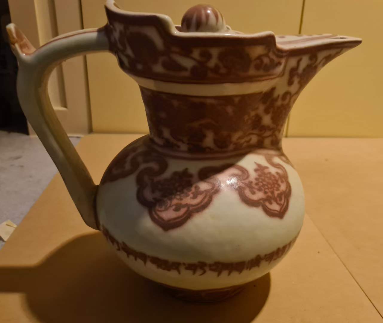 聖密宗古梵密金剛禪傳統密內密教曼陀羅大法王帽型金輪法幢釉裡紅醍醐灌頂聖密壺的意思,是說衪大法王帽其實就是梵從隱到顯的靈動聖形,所以尊稱曼陀羅大法王帽,金輪法幢是指金輪應用祖師的等級表法,及幢上的圖案聖義,釉裡紅是指這種瓷的發色,灌頂是指他的用的 2、醍醐灌頂聖密壺—連線宇宙靈效能量的開關