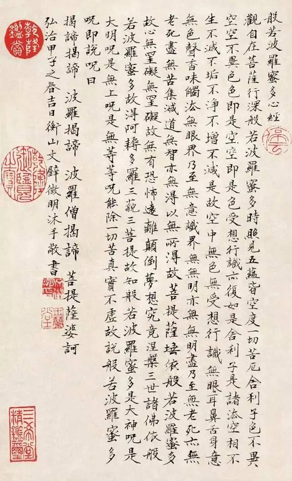 【分享】從王羲之到弘一,古今十位書法名家的《心經》真跡一次看個夠 抄寫《心經》,是一種收攝心神的好方法,一筆一劃中,就是與智者對話的過程,修行的過程,開啟智慧的過程。 《心經》全稱《摩訶般若波羅蜜多心經》,略稱《般若心經》、《心經》,是佛經中字數最少,但影響最大的一部經典著作。