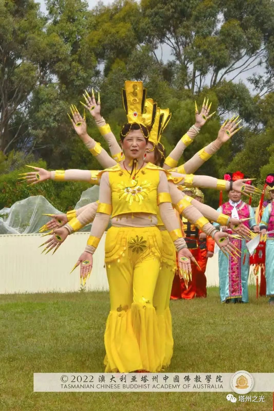 ![]() 遊行之前,司儀長老禮讚國家和原住民,專程由美國洛杉磯來聖地參加弘法的金剛紅淨長老鳴響開場鑼,聖密迴向、聖密灑淨、聖密祈福、聖龍聖獅點睛等聖儀繼而徐徐展開。 精神靈性文化的儀軌非聲色的表演,神聖的儀軌是讓人端正、調整自身與靈性宇宙之間的關係。 薄伽梵 智及維摩詰 師尊教導:「人和宇宙是一個不連續的整體,是一個相互協調、相互和諧的關係。」正確修習〝儀軌〞能促進人和靈性宇宙之間的〝友誼〞,令人在即態世界中辦事能夠更順利一點。 儀軌圓成,遊行正式開始,塔州中國佛教學院與當地民眾分享祖國不同特色的文化: 大聖 釋迦牟尼 佛像聖密天升座大蓮花,蓮花車上播放著《敦煌》梵樂,代表著佛教文化,代表著佛的法性,代表著佛對眾生的大愛; 深受人民信仰的千手觀音展示天上觀音佛千手千眼之神變加持,聞聲救苦,粉身碎骨不辭難,乃觀世音佛之心誓; 負責鼓樂的聖密長老,無我地把大鼓掛在雙肩上,走畢遊行全程數公里,響徹雲霄的鼓樂,指揮金龍、法獅,按照宇宙頻率,遵循宇宙規律,號令整齊劃一,無所畏懼,聖自解脫。 近代中國清朝公主格格隊向群眾行宮庭之禮,顯示中國貴為〝禮儀之邦〞,〝禮的文化〞充盈於一舉手、一投足之中; 歌頌唐朝英明皇帝秦皇(李世民)的〝秦皇破陣舞〞,揮動著勇戰敵軍之勝利旗幟,展示著中國古代文化武將武舞的風彩。 在聖密宗隊伍中,更有追隨 薄伽梵 師尊卅載的本地金剛禪修持班學員穿著中國古裝戲服派糖果,並向觀眾揮手祝賀〝聖誕快樂〞,中西文化相融相契的現實寫照。 ![]()