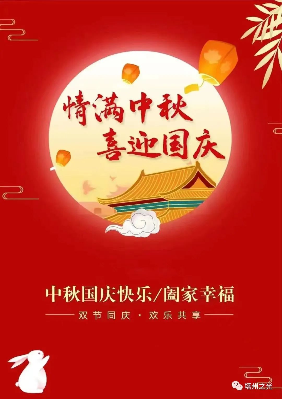 月灑夜空千里亮,燈飄大地萬家紅。