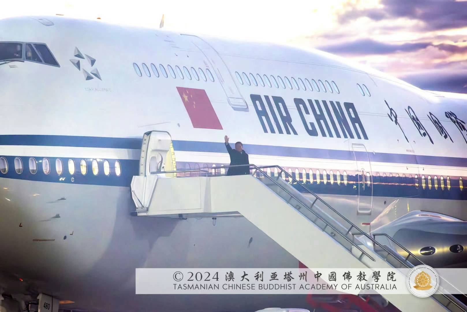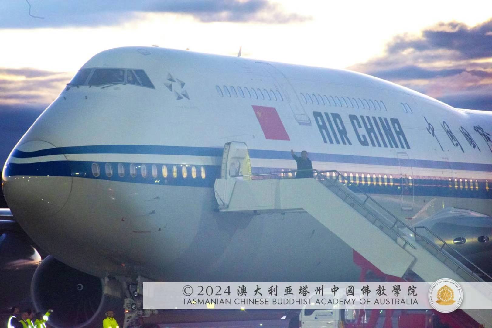 弟子在停機坪外看見李強總理走上懸梯,然後停下向大家揮手致意。弟子後來回看 ![]() 弟子們能夠在比較近的距離向祖國的領導人李強總理舞獅,擂鼓擊镲,這一場景無比的吉祥、殊勝、神聖和喜悅,弟子們實際上是代表全世界的聖密弟子們向祖國母親致以最赤誠的愛國之心,並以宗下的聖密傳統,通過舞獅的形式,祝願祖國母親繁榮昌盛、長治久安,人民安居樂業、生活幸福。同時,弟子也為圓滿完成 師尊爺爺交代的弘法任務而感到喜悅,從清晨天未亮開始準備,一天內四次轉場往來於堪培拉的街頭,直到最後一站目送總理飛機起飛,天也已經全黑。雖然奔波了一天,但是內心是很圓滿、很喜悅。 弟子亦很感恩這次活動的主辦方,他們非常辛苦,要協調二千餘人的隊伍,安排住宿、飲食、交通,弟子們每次轉場都是由陳運國會長指揮,有專門的大巴車接送弟子們,也有專人送飯菜,有事先安排的住宿。如此規模的協調調配,屬實不易,他們無私無我的付出,令弟子敬佩。