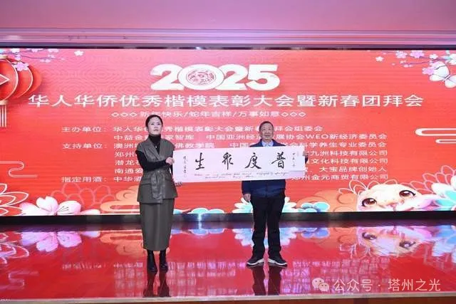 為此,華人華僑優秀楷模表彰大會暨新春團拜會組委會、中益金輝專家智庫、中國亞洲經濟發展協會 國家民政部原副部長、中國藏學研究中心黨組書記陳虹同志為澳洲塔州中國佛教學院院長 薄伽梵 智及維摩詰 宗師頒發榮譽證書。