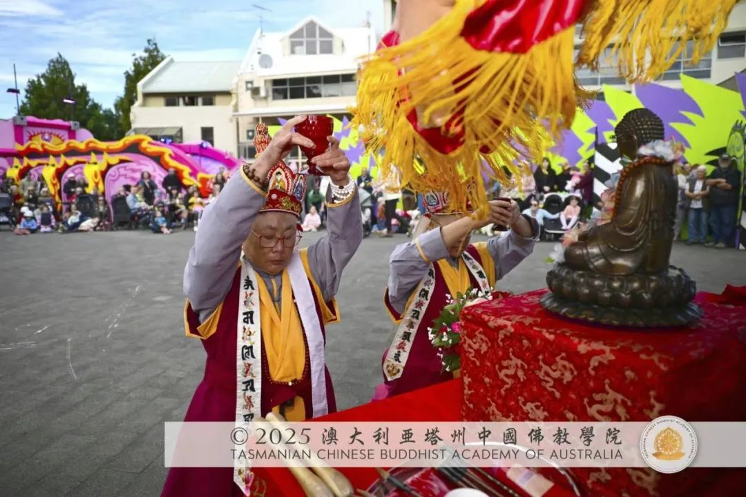 [百相萬行 ![]() ![]() 〝飛龍在天,利見大人〞。聖龍擎首凌雲,振翼遨遊,傲視九霄,氣宇軒昂,神形自在。其勢扶搖直上,如貫穿天地之金剛炁柱,所過之處,雲開氣裂,光耀萬方。嘯聲一起,驚動四隅,觀者無不側目振神。聖龍俯衝迴旋之際,身姿蜿蜒翻騰,龍影如墨筆流轉,於虛空之中勾勒〝中〞字紋樣,宛如真言流形,顯出 薄伽梵龍天聖族之神聖印記。其形其氣,皆合天地陰陽之理,所動所靜,無非法界之顯現。每一飛躍,皆承載靈氣;每一縷龍影,皆昭示吉祥。其光如水,遍灑人間,其氣如霧,潤澤群靈。鼓點激昂,鈸聲鏗然,聖龍盤旋越發矯健,震撼全場。觀者屏息凝神,心隨鼓動,神隨龍行,或潸然動容,或喜形於色,掌聲如雷,讚聲不絕。 鼓聲乍起,聖法獅子一聲長吼,猶金剛震怒,驚天動地,聲徹十方。 中國漢傳佛教密宗之聖法獅子舞,所顯非尋常技藝,實為表法密儀。其舞於無形中結界,隱態時空,氣機流轉而不留痕。舞步激昂而剛勁,高低騰挪,如金剛鼓震,似雷霆萬鈞;旋轉開合,如法輪常轉,圓滿無礙,內含密義。其形為獅,實為法。聖密獅形陀羅尼,顯忿怒之相,然非嗔怒,實乃大悲之威。舞者一躍一翻,非徒形勢之變,實表〝正法輪身、法性輪身、教令輪身〞三身一如之妙義。降魔伏妖,顯無畏之姿,聖光赫赫;破邪顯真,現威德之相,正法昭昭。觀之者心驚膽定,靈識俱清,如見 大聖 釋迦牟尼 佛獅座前絕狐跡而萬邪息。眾生若見,即得安樂;若聞,即得解脫。是舞也,非唯為觀,實為加持。願此舞所起,化作一願,祝塔州風調雨順、世界各地國泰民安。