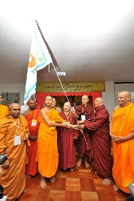 WBSY 會 議 進 入 高 潮 , 頒 獎 予 大 居 士 , 高 僧 們 互 送 禮 物 , 授 旗 給 下 屆 舉 辦 國 。