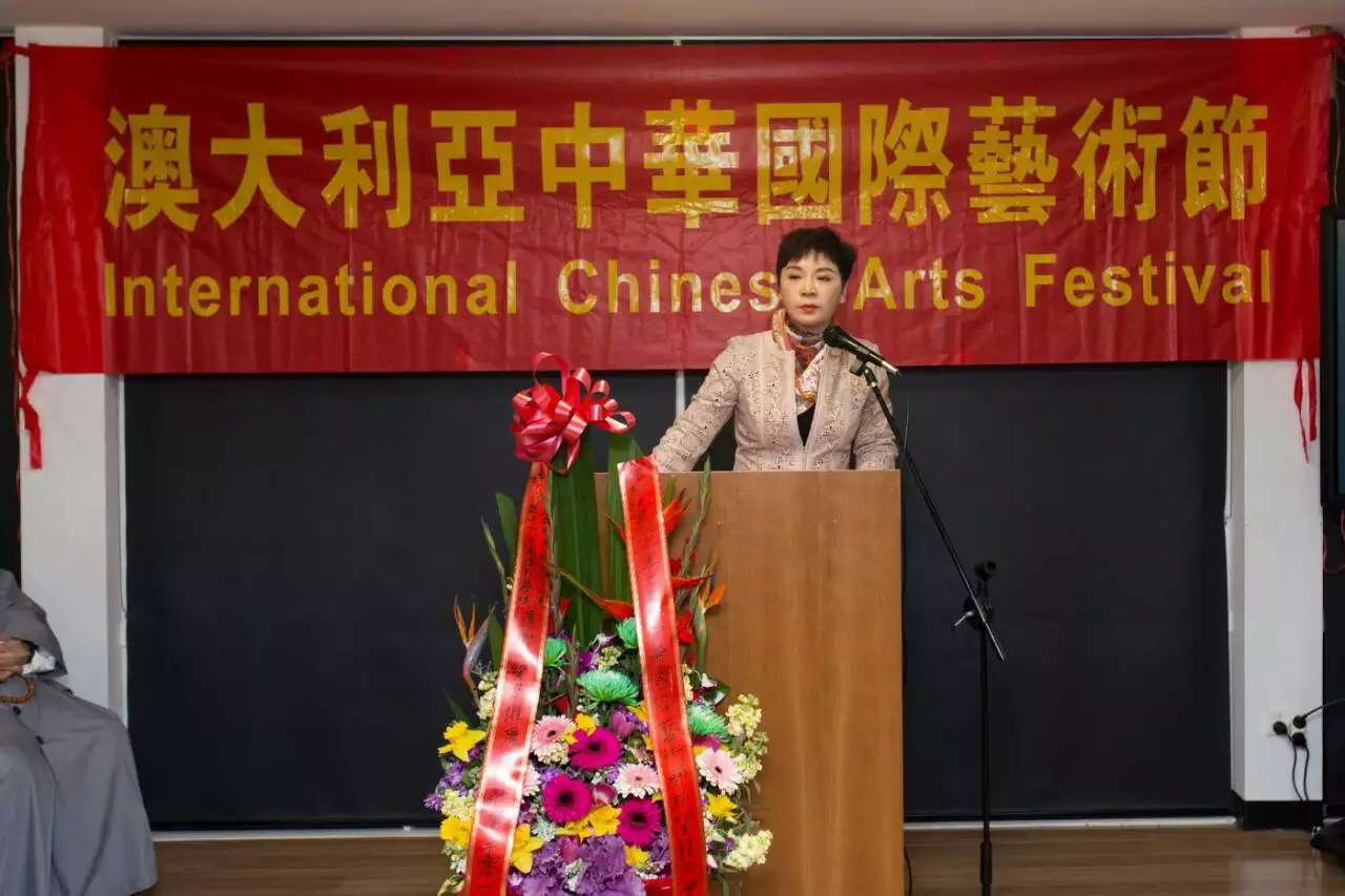 祖 國 駐 墨 爾 本 總 領 館 文 化 領 事 陳 曉 女 士 致 辭 , 受 到 全 場 最 熱 烈 歡 迎 。