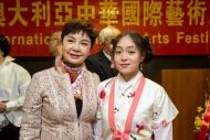 中 華 國 際 藝 術 節 副 主 席 端 莊 美 麗 的 周 斌 女 士 宣 讀 藝 術 節 榮 譽 主 席 、 前 聯 邦 貿 易 部 長 Andrew Robb AO 先 生 的 賀 信 。