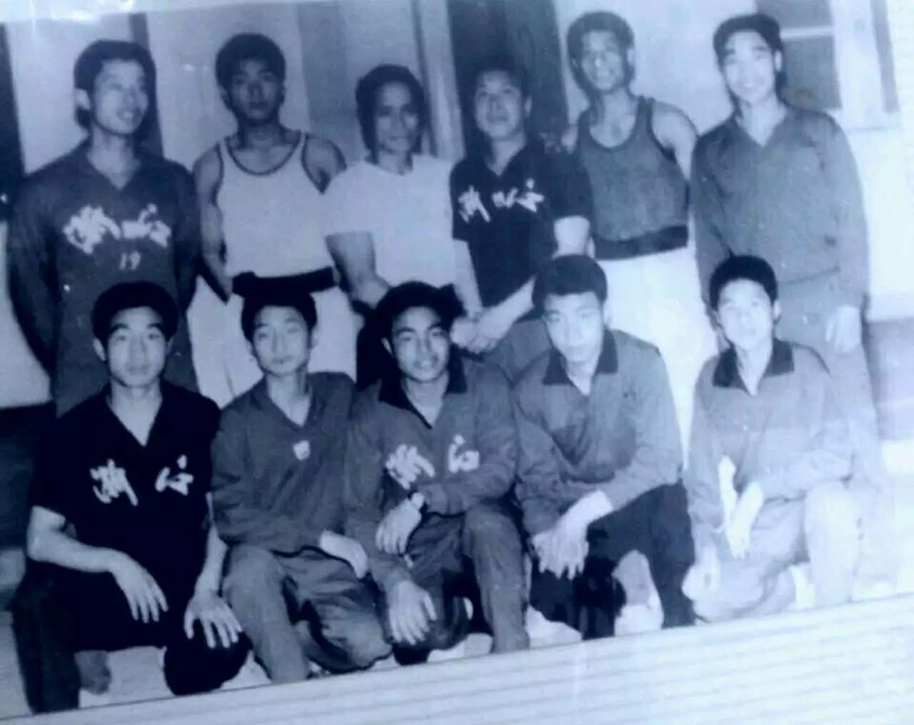 ( 图 为 : 邵 汉 生 先 生 的 得 意 门 生 , 香 港 武 术 队 成 员 南 拳 王 赵 威 教 练 与 浙 江 散 打 队 全 体 运 动 员 于 中 国 广 西 南 宁 全 国 首 届 武 会 合 影 。 )