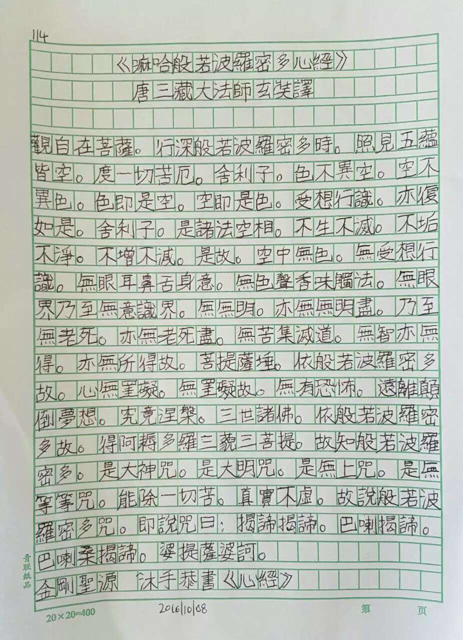 小 行 者 聖 源 , 除 了 鋼 琴 是 他 的 愛 好 之 外 , 每 天 清 晨 學 寫 《 心 經 》 一 篇 。