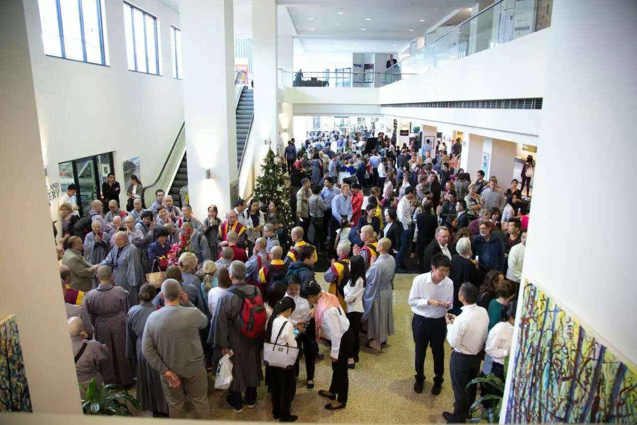 從 美 國 分 院 專 程 抵 Hobart 觀 看 演 奏 會 的 金 剛 佛 龍 小 活 佛 代 表 中 國 佛 教 學 院 向 鄭 教 授 敬 送 花 籃 。