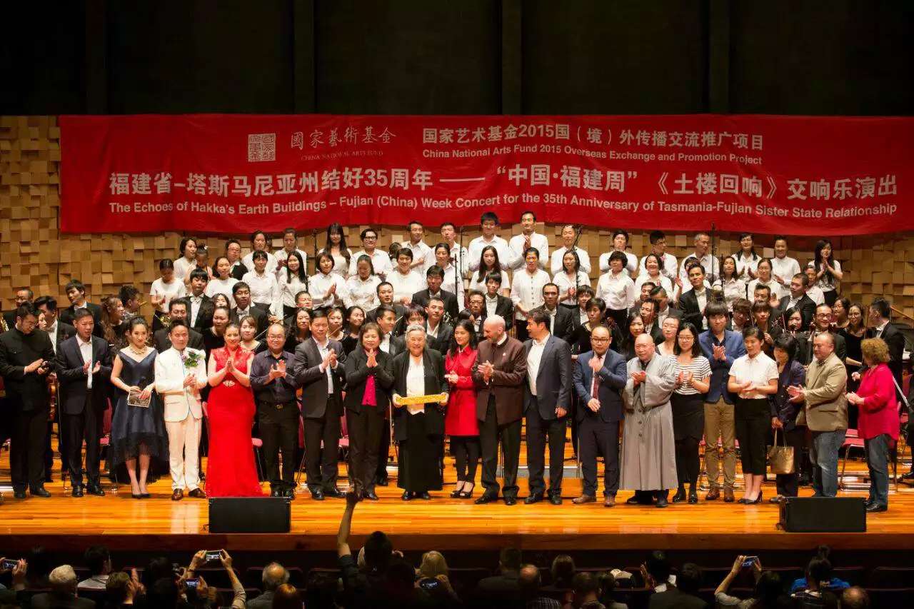 昨 晚 七 點 , 在 霍 巴 特 聯 邦 音 樂 廳 舉 辦 的 福 建 省 - 塔 斯 馬 尼 亞 州 結 好 35 週 年 — 中 國 「 福 建 周 」 《 土 樓 迴 響 》 交 響 演 出 , 取 得 全 滿 成 功 。 非 常 有 幸 的 見 到 了 中 國 知 名 女 指 揮 家 鄭 小 瑛 教 授 ( 祖 籍 福 建 永 定 ) 非 常 感 動 、 感 恩 。
