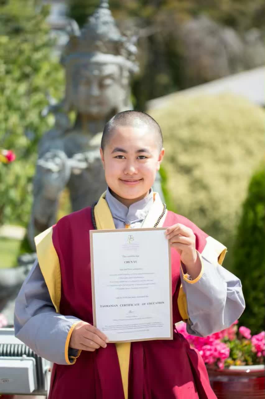 金 剛 佛 心 轉 世 者 今 年 唸 十 二 班 , 作 為 大 學 入 學 的 評 估 標 準 , 在 十 一 年 級 及 十 二 年 級 的 學 期 尾 , 學 生 們 要 就 他 們 唸 的 學 科 , 參 加 一 個 叫 Tasmanian Certificate of Education( 塔 州 教 育 文 憑 ) 的 考 試 。 這 個 考 試 的 成 績 是 全 澳 洲 承 認 及 通 用 , 作 為 全 澳 大 學 收 生 資 格 的 標 準 。