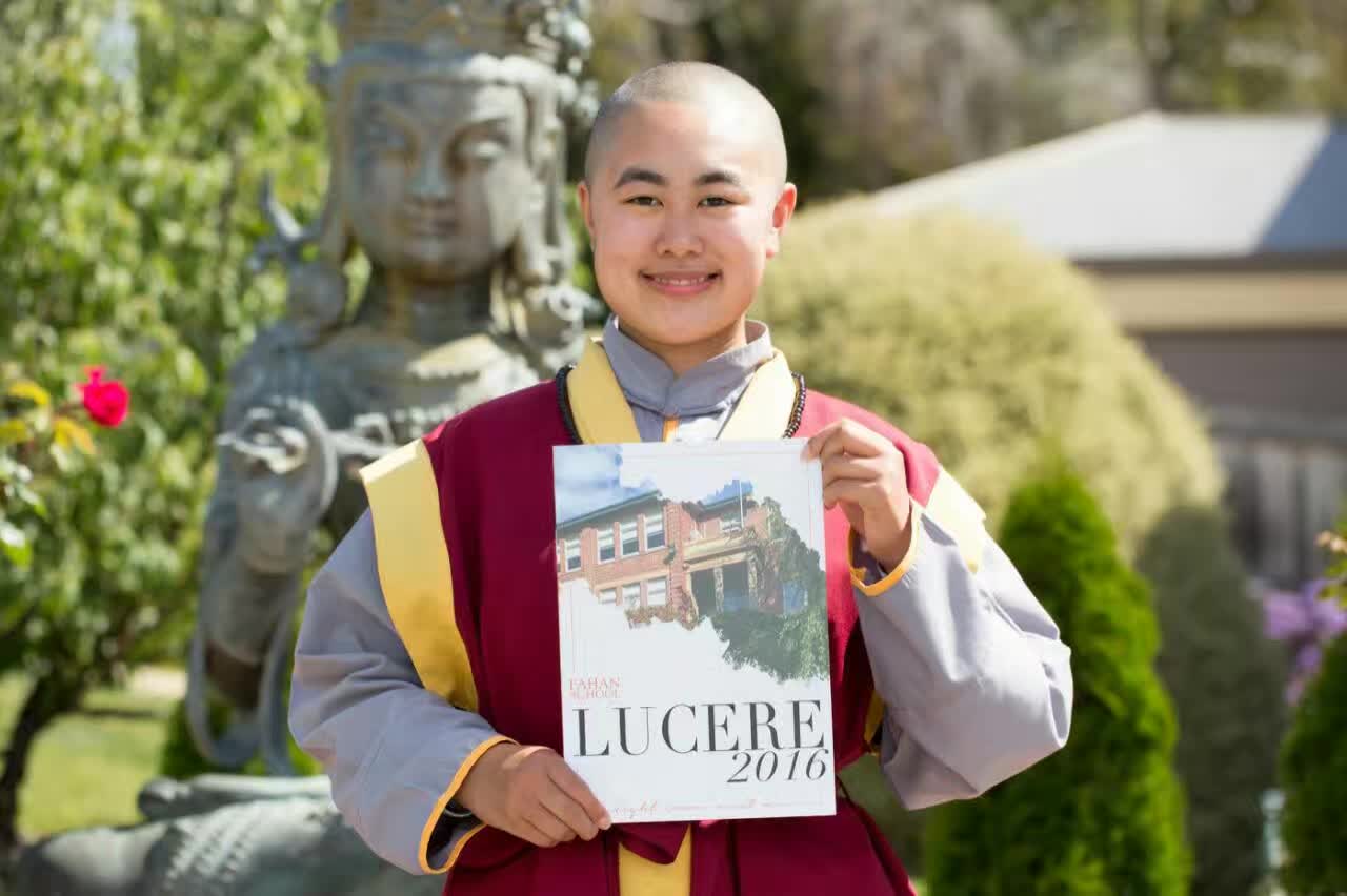 佛 心 高 中 畢 業 , 對 弟 子 來 說 , 是 一 個 階 段 的 完 成 。 回 顧 這 十 多 年 的 經 歷 , 百 感 交 集 。 佛 心 是 一 個 很 聰 明 的 孩 子 , 自 小 已 在 很 多 方 面 有 超 乎 一 般 孩 子 的 表 現 。 還 記 得 她 仍 未 夠 兩 歲 , 當 弟 子 教 導 佛 護 背 誦 《 聖 偈 》 , 她 在 旁 邊 聽 著 , 竟 然 能 在 弟 子 每 唸 完 一 句 , 她 就 接 上 下 一 句 。 她 在 小 學 四 年 級 , 得 到 全 塔 州 電 腦 科 考 試 的 第 一 名 , 只 差 一 分 , 就 達 全 澳 第 一 的 資 格 。