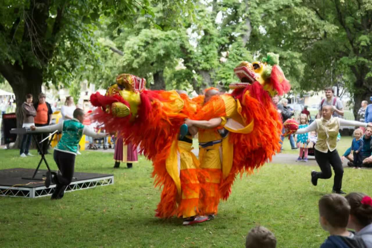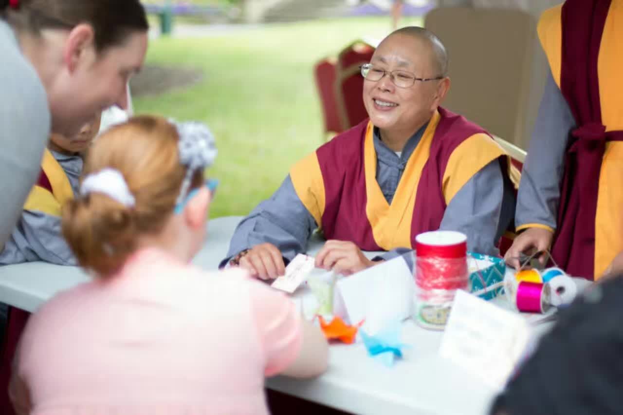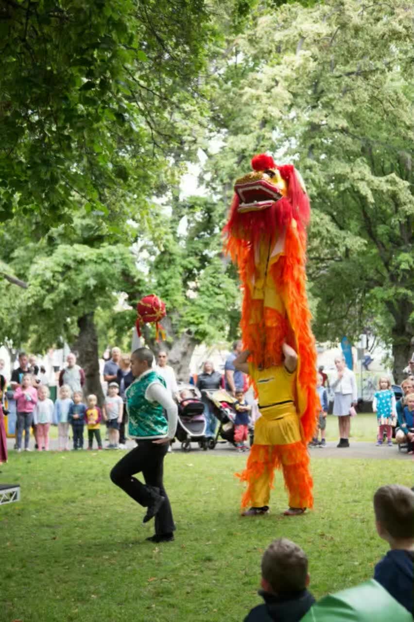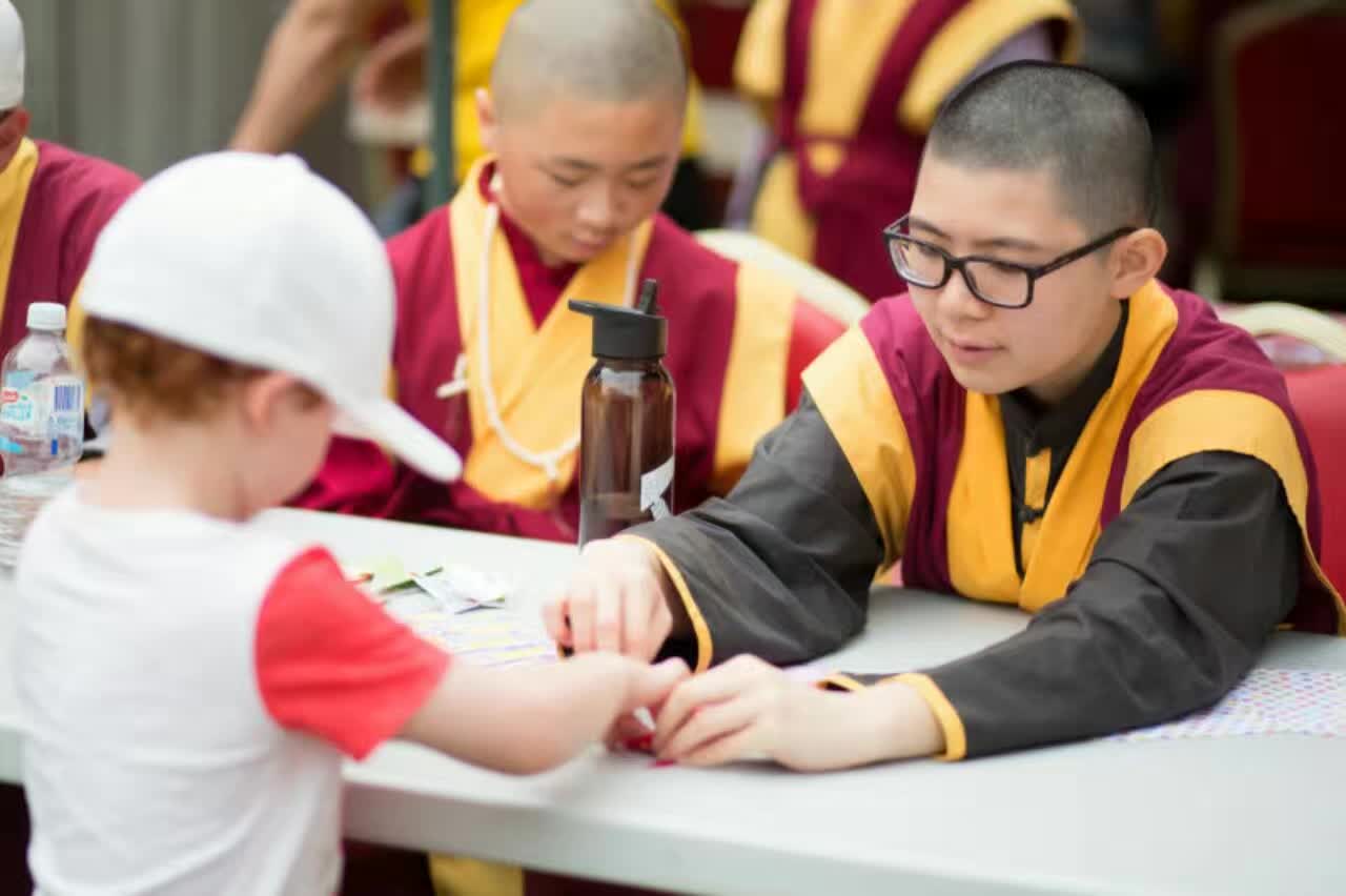 在 2017 年 元 旦 日 , 澳 大 利 亞 塔 州 中 國 佛 教 學 院 再 次 被 邀 請 在 一 年 一 度 於 霍 巴 特 舉 行 的 美 食 節 〝 兒 童 在 公 園 〞 的 活 動 中 , 作 遊 戲 亭 的 主 持 及 表 演 。 佛 教 學 院 的 遊 戲 亭 為 兒 童 指 導 摺 紙 , 亦 以 他 們 的 英 文 名 字 的 拼 音 , 替 他 們 做 一 個 中 文 譯 音 的 書 籤 , 同 時 也 讓 孩 童 們 試 戴 聖 密 金 剛 舞 的 獅 頭 , 為 眾 生 提 供 對 學 院 進 一 步 認 識 的 因 緣 , 也 令 他 們 對 中 國 文 化 有 初 步 認 識 的 機 會 。 如 去 年 一 樣 , 受 到 兒 童 及 他 們 家 人 們 的 熱 烈 支 持 和 喜 愛 。