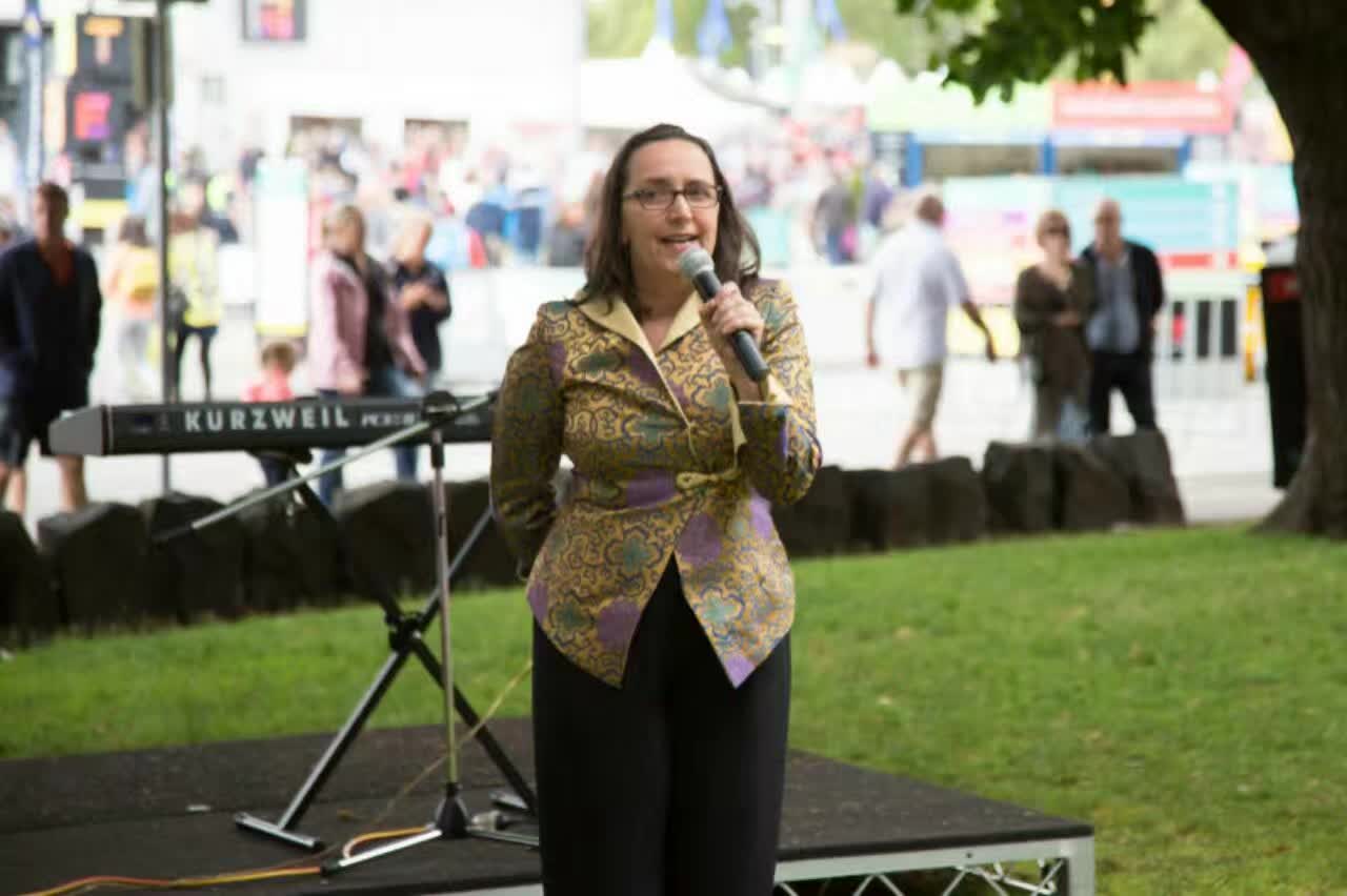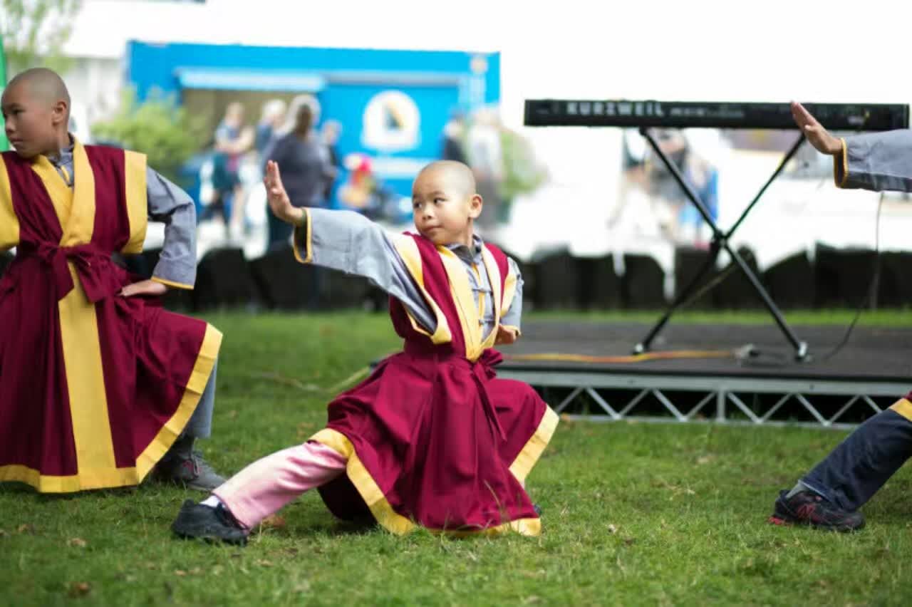 在 正 午 , 佛 教 學 院 在 霍 巴 特 市 長 代 表 Alderman Helen Burnett 的 點 睛 後 , 為 圍 滿 舞 台 前 的 觀 眾 表 演 聖 密 金 剛 獅 子 舞 , 之 後 金 剛 聖 源 小 活 佛 為 觀 眾 表 演 了 兩 首 樂 曲 , 然 後 金 剛 永 誠 長 老 的 轉 世 者 們 , 為 觀 眾 示 範 了 動 禪 陀 羅 尼 。