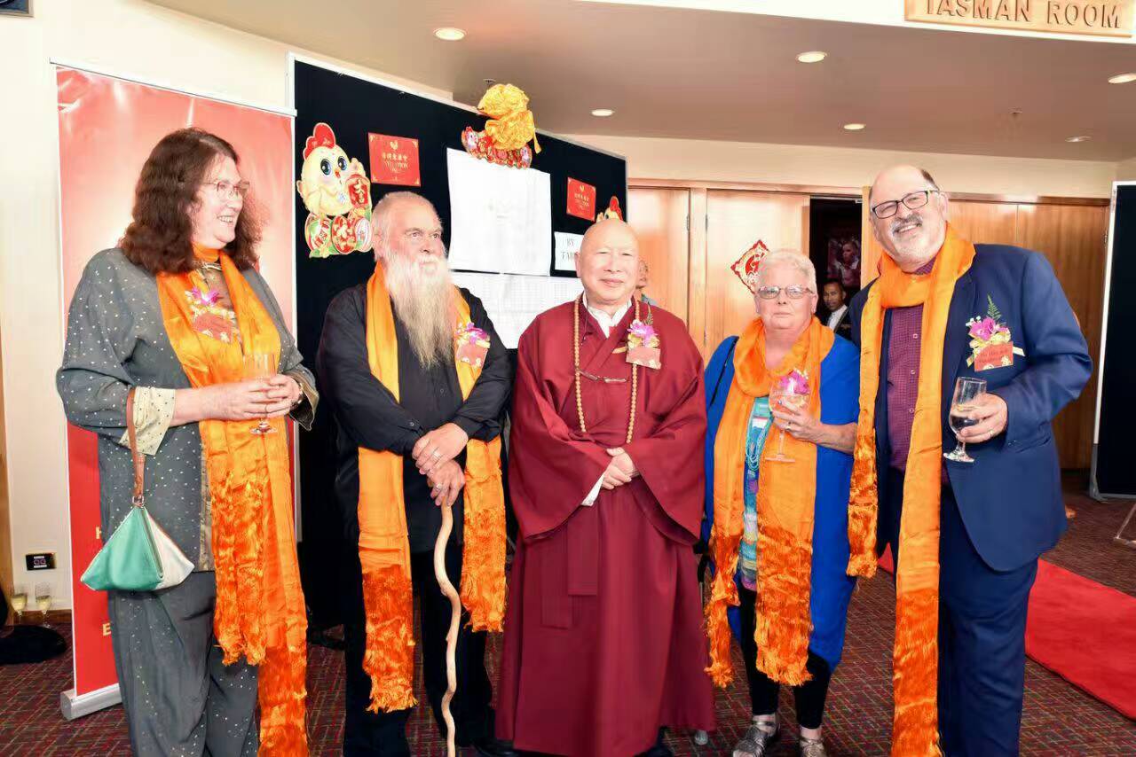 2017 年 1 月 28 日 , 中 國 農 曆 丁 酉 雞 年 大 年 初 一 晚 六 時 , 澳 大 利 亞 中 國 佛 教 學 院 , 金 剛 禪 寺 大 本 山 與 塔 州 社 會 各 界 及 全 世 界 聖 密 宗 代 表 匯 聚 Wrest Point 賭 場 ( 維 斯 特 角 大 酒 店 ) , 團 拜 晚 宴 高 朋 知 友 滿 堂 。