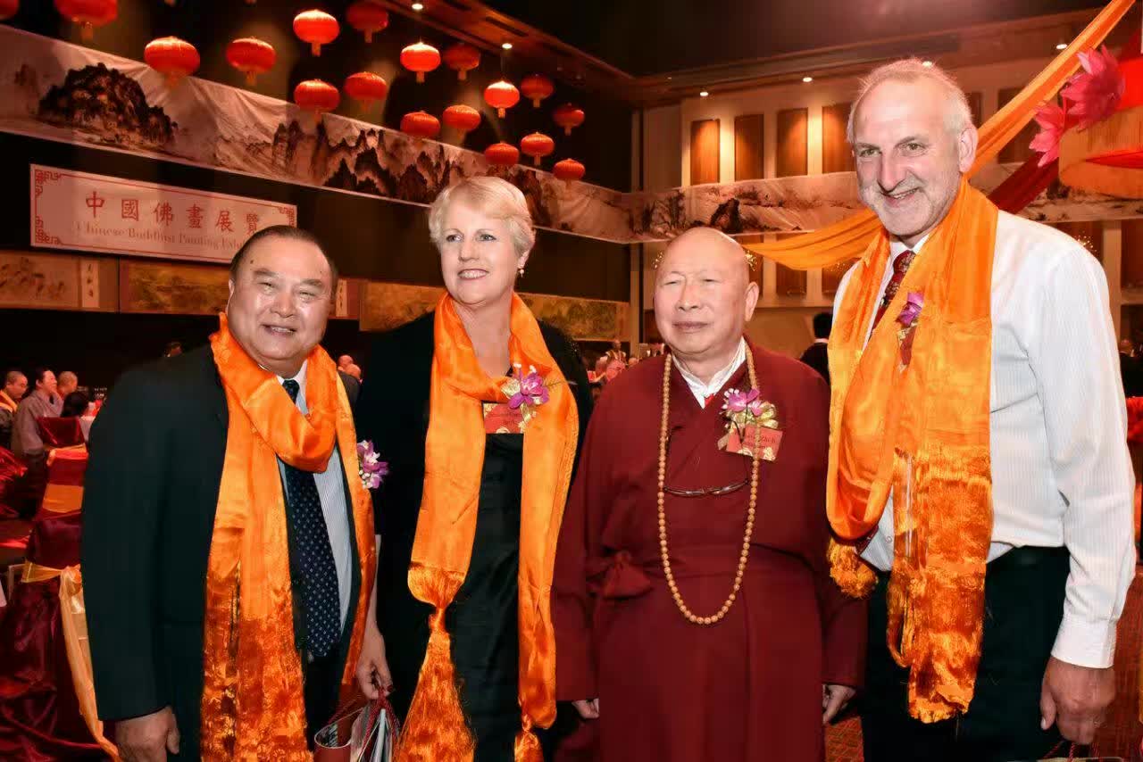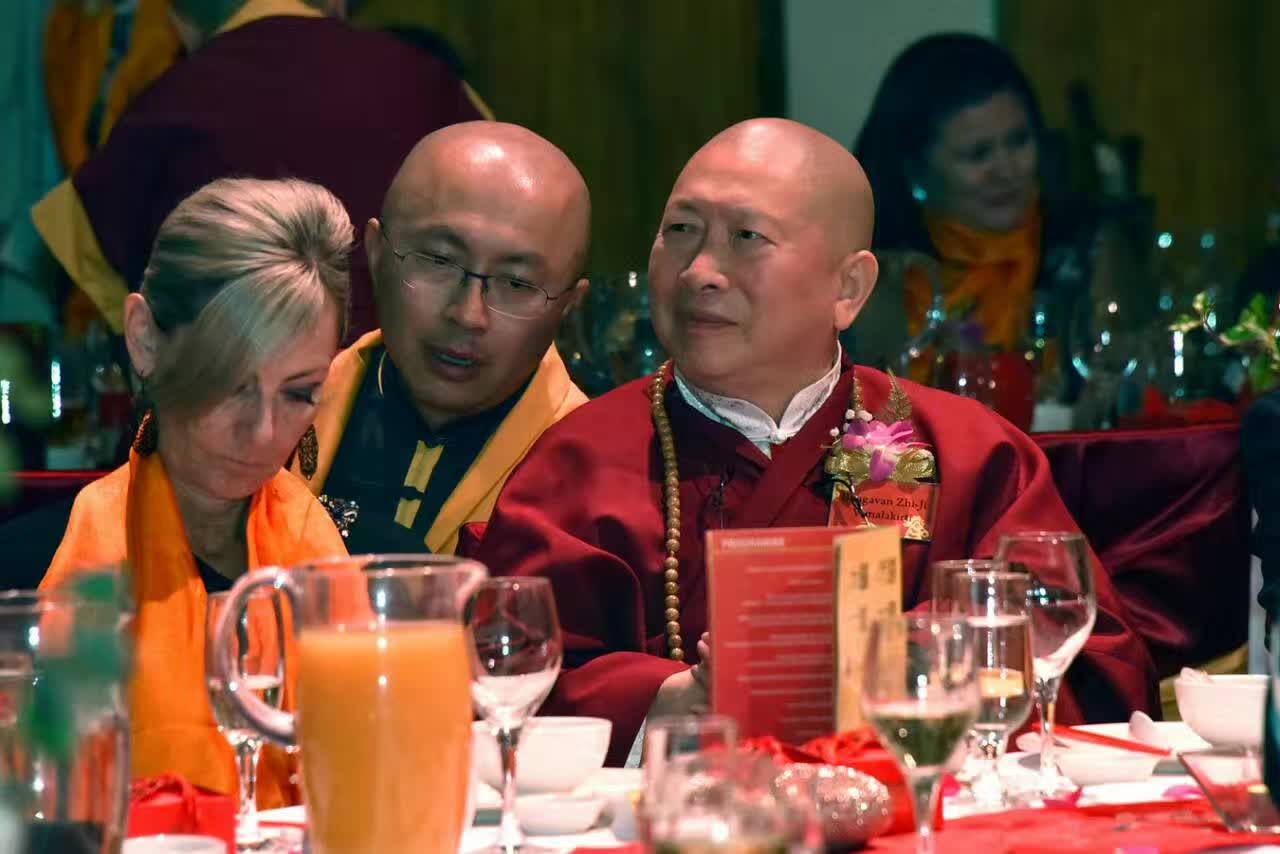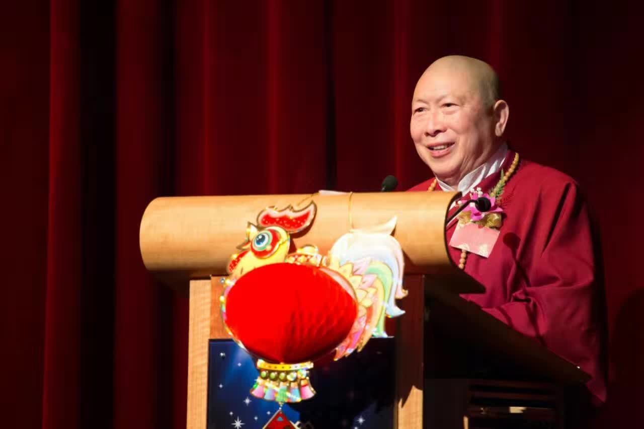 薄 伽 梵 智 及 維 摩 詰 宗 師 於 澳 大 利 亞 塔 州 中 國 佛 教 學 院 舉 辦 的 丁 酉 新 春 團 拜 晚 宴 上 致 歡 迎 辭