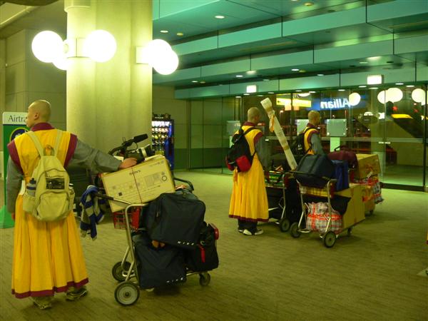 佛 舍 利 禮 瞻 團 的 聖 密 僧 伽 們 集 齊 法 器 行 裝 , 赴 住 錫 寺 院 ── 聖 密 宗 金 剛 禪 佛 教 布 里 斯 本 金 剛 聖 天 寺 。