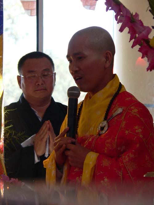 年 度 佛 舍 利 禮 瞻 周 〞 隆 重 開 幕 。 釋 善 友 法 師 致 辭 歡 迎 諸 高 僧 大 德 蒞 臨 佛 陀 寺 。