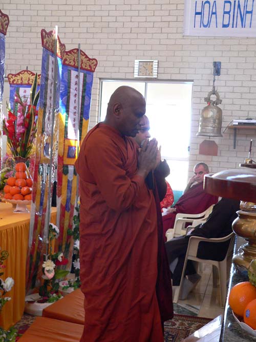 來 自 斯 里 蘭 卡 的 小 乘 佛 教 高 僧 誦 巴 利 語 讚 頌 經 文 。