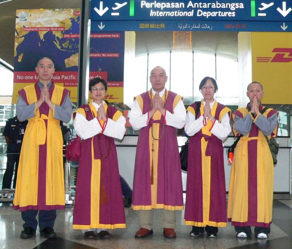 聖 密 宗 代 表 團 部 份 成 員 在 馬 來 西 亞 吉 隆 坡 國 際 機 場 。
