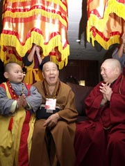 「 薄 伽 梵 七 佛 之 師 曼 殊 師 利 佛 大 聖 寶 金 剛 無 上 阿 闍 黎 上 白 下 雲 老 禪 師 蒞 臨 塔 州 , 如 果 祂 能 夠 親 眼 看 看 我 們 的 金 剛 佛 臨 的 話 , 那 麼 以 一 個 大 家 族 來 說 , 那 就 是 〝 五 代 同 堂 〞 。 作 為 聖 密 宗 古 梵 密 , 從 古 天 竺 持 明 清 淨 傳 入 華 夏 , 興 盛 於 大 唐 , 後 因 武 宗 滅 佛 , 遭 遇 法 難 而 蘊 道 潛 真 、 弱 水 三 萬 , 艱 難 困 苦 , 不 墮 聲 色 地 發 展 到 現 代 , 一 個 家 族 的 〝 五 代 歡 聚 〞 , 這 真 是 一 件 值 得 慶 賀 的 大 喜 事 啊 ! 」