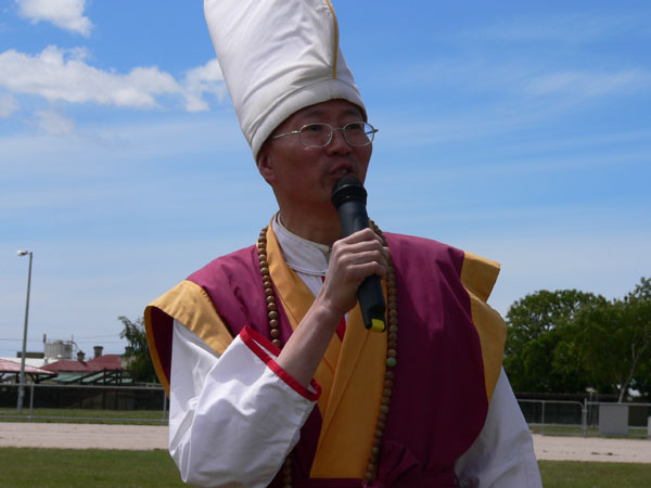 〝 龍 騰 獅 躍 〞 法 會 司 儀 ── 金 剛 永 明 長 老 的 風 采 。
