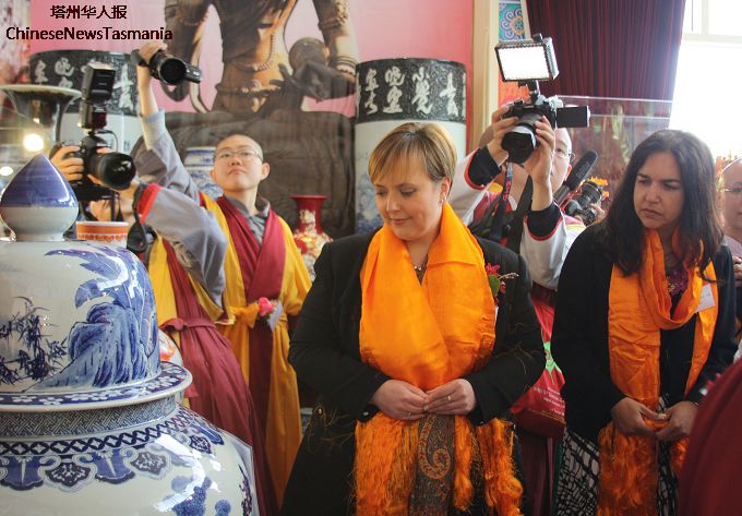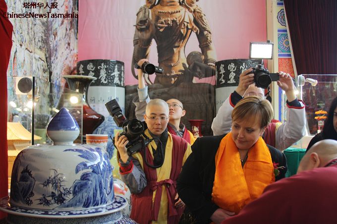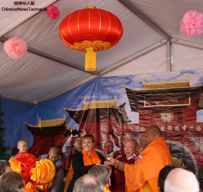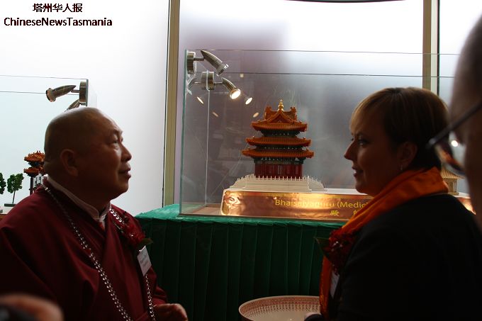 10 月 23 日 , 由 中 國 漢 傳 密 宗 聖 密 宗 金 剛 禪 佛 教 ( 中 國 漢 傳 密 學 研 究 院 ) 主 辦 的 「 塔 州 中 國 佛 教 文 化 展 覽 」 在 霍 巴 特 Sandy Bay Churchill Ave 418 隆 重 開 幕 , 塔 州 和 霍 巴 特 市 各 界 政 要 30 多 人 出 席 了 開 幕 式 , 出 席 開 幕 式 的 來 賓 包 括 塔 州 州 長 Lara Giddings , 霍 巴 特 市 長 Damon Thomas , 多 元 文 化 協 會 的 代 表 , 華 人 社 區 代 表 , 以 及 多 位 議 員 。 所 有 參 加 開 幕 式 的 來 賓 都 參 與 了 剪 綵 儀 式 。 剪 綵 儀 式 之 後 , 來 賓 們 參 觀 了 位 於 418 Churchill Ave 的 「 塔 州 中 國 佛 教 文 化 展 覽 」 。 這 裡 展 出 了 塔 州 中 國 佛 教 文 化 公 園 的 微 縮 模 型 以 及 該 佛 學 院 收 藏 的 一 百 多 件 佛 教 文 化 收 藏 品 。 中 國 駐 墨 爾 本 總 領 館 總 領 事 宋 昱 旻 先 生 發 來 了 賀 電 , 宋 總 在 寫 給 佛 學 院 王 信 得 大 師 的 賀 電 中 說 : 「 。 。 。 我 對 您 多 年 來 致 力 於 弘 揚 傳 統 佛 教 文 化 , 促 進 中 澳 民 間 友 誼 的 善 舉 表 示 欽 佩 , 衷 心 祝 願 您 的 這 個 佛 教 文 化 公 園 構 想 得 以 早 日 實 現 , 為 雙 方 人 文 交 流 做 出 新 的 貢 獻 。 」 塔 州 中 國 佛 教 文 化 公 園 一 直 是 中 國 漢 傳 密 宗 聖 密 宗 金 剛 禪 佛 教 致 力 於 在 塔 州 建 立 的 一 個 宏 大 的 綜 合 型 佛 教 文 化 項 目 , 選 址 於 佔 地 263 英 畝 的 霍 巴 特 的 Tea Tree , 該 項 目 包 括 佛 教 大 學 , 廟 宇 , 佛 教 文 化 博 物 館 , 展 覽 館 , 會 議 中 心 , 等 等 , 是 一 個 集 佛 學 教 育 , 廟 堂 崇 拜 , 旅 遊 文 化 為 一 體 的 大 型 文 化 項 目 , 歡 迎 世 界 各 地 的 佛 教 徒 前 來 學 習 交 流 。 這 個 項 目 於 2000 年 由 總 部 位 於 霍 巴 特 的 中 國 漢 傳 密 宗 聖 密 宗 金 剛 禪 佛 教 ( 中 國 漢 傳 密 學 研 究 院 ) 向 當 時 的 州 長 Jim Bacon 開 始 提 出 該 項 目 的 規 劃 , 在 過 去 的 十 多 年 中 , 塔 州 的 州 長 已 經 換 了 四 屆 , 儘 管 每 個 州 長 都 表 示 了 支 持 該 項 目 的 建 設 , 但 是 目 前 這 個 佛 教 文 化 公 園 的 項 目 仍 然 在 審 批 之 中 。 至 今 沒 有 得 到 批 准 的 原 因 據 說 , 2007 年 之 後 , 該 地 區 的 土 地 使 用 規 劃 改 成 農 業 用 地 , 不 得 用 於 其 它 用 途 。 不 過 據 佛 學 院 的 王 信 得 大 師 介 紹 , 近 年 來 , 由 於 中 國 在 世 界 上 影 響 力 的 大 增 , 中 國 文 化 的 影 響 力 大 增 , 也 間 接 推 進 了 項 目 的 審 批 的 進 展 , 當 地 坎 帕 尼 亞 市 政 廳 表 示 將 盡 快 整 理 資 料 報 州 政 府 審 批 。 據 相 關 資 料 介 紹 , 中 國 漢 傳 密 宗 聖 密 宗 金 剛 禪 佛 教 是 一 支 起 源 於 唐 朝 的 一 個 佛 教 分 支 , 在 中 國 大 陸 流 傳 千 年 , 目 前 該 佛 教 總 部 在 澳 大 利 亞 的 塔 斯 馬 尼 亞 , 領 袖 人 物 是 王 信 得 大 師 。 美 國 , 加 拿 大 , 新 西 蘭 , 香 港 等 華 人 集 聚 的 地 區 都 有 分 支 機 構 , 在 中 國 大 陸 有 該 流 派 存 在 , 每 年 浴 佛 節 都 有 上 百 人 從 世 界 各 地 趕 來 塔 州 慶 祝 。 下 面 請 看 23 日 活 動 的 圖 片 報 導 :