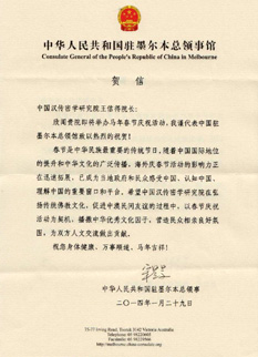 中 國 駐 墨 爾 本 總 領 事 館 2014 甲 午 馬 年 賀 信