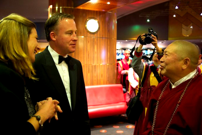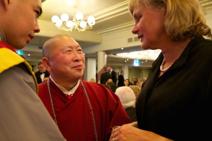 一 次 平 常 的 問 候 , 不 僅 體 現 了 塔 州 社 會 對 中 國 漢 傳 佛 教 密 宗 ── 聖 密 宗 古 梵 密 金 剛 禪 佛 教 的 認 同 , 更 顯 示 了 塔 州 父 母 官 們 的 愛 民 親 民 , 對 實 踐 多 元 文 化 政 策 和 多 元 化 社 會 的 高 度 重 視 , 寬 容 接 納 不 同 的 宗 教 文 化 團 體 , 體 現 了 澳 洲 穩 定 和 諧 的 社 會 、 優 良 健 全 的 人 文 建 設 和 騰 飛 猛 進 的 經 濟 發 展 的 內 在 靈 性 力 量 。