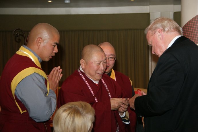 中 國 漢 傳 佛 教 密 宗 ── 聖 密 宗 古 梵 密 金 剛 禪 佛 教 、 中 國 漢 傳 密 學 研 究 院 已 經 是 超 過 十 度 出 席 塔 州 州 長 主 持 的 籌 款 盛 會 , 而 且 是 今 年 出 席 此 盛 會 的 最 大 團 體 , 被 宴 會 組 織 者 安 排 在 會 場 正 中 , 突 顯 組 織 者 對 薄 伽 梵 智 及 維 摩 詰 師 尊 和 聖 密 宗 的 極 大 尊 敬 。