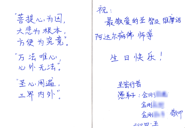 恭 賀 薄 伽 梵 大 聖 智 及 維 摩 詰 阿 達 爾 嘛 佛 師 尊 聖 誕