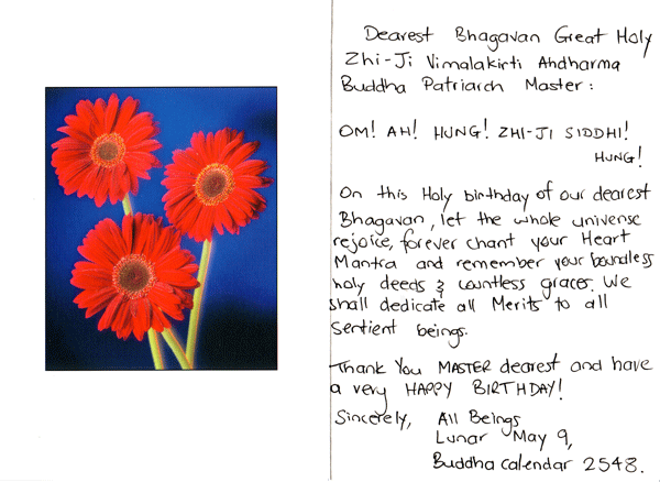 恭 賀 薄 伽 梵 大 聖 智 及 維 摩 詰 阿 達 爾 嘛 佛 師 尊 聖 誕